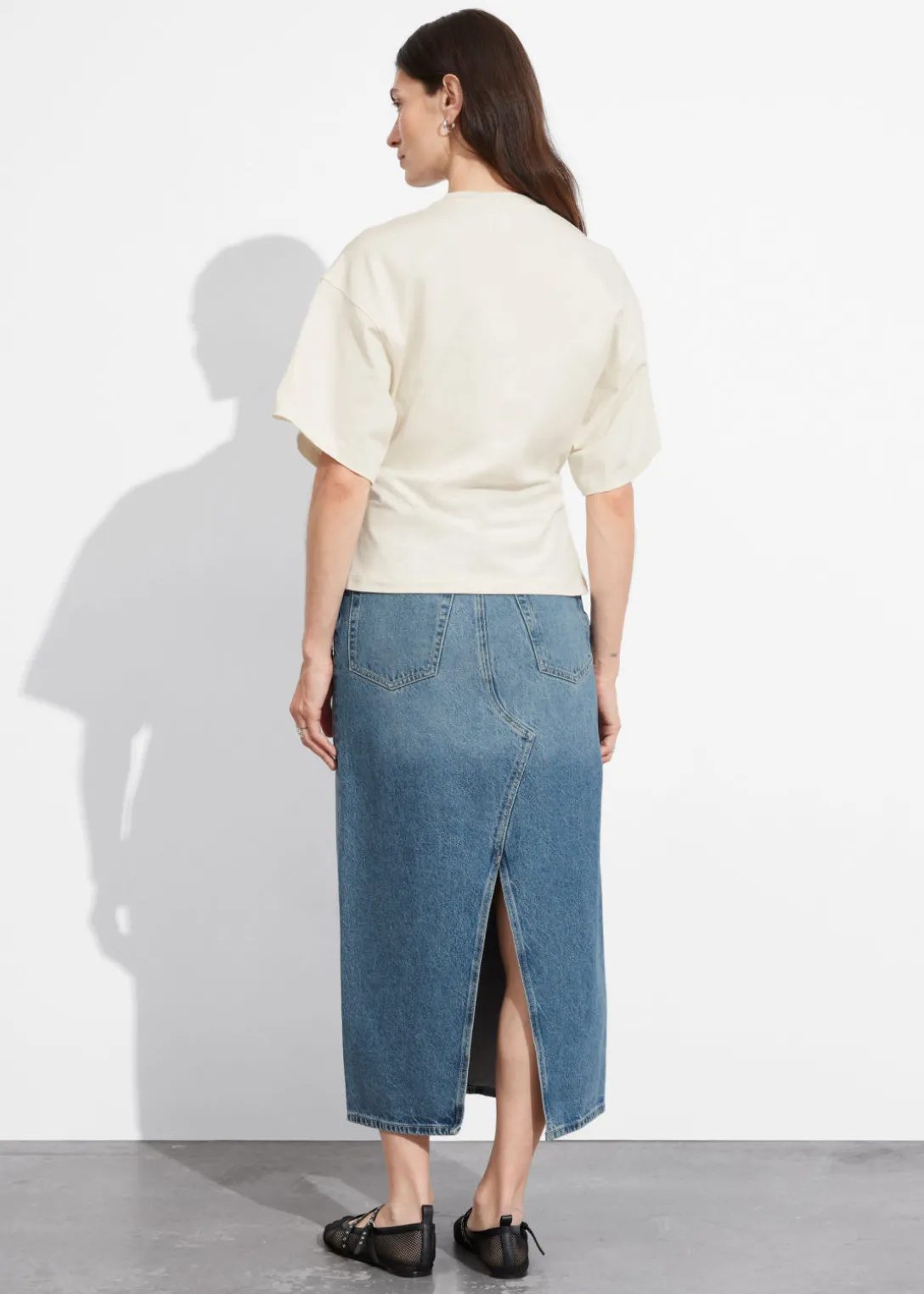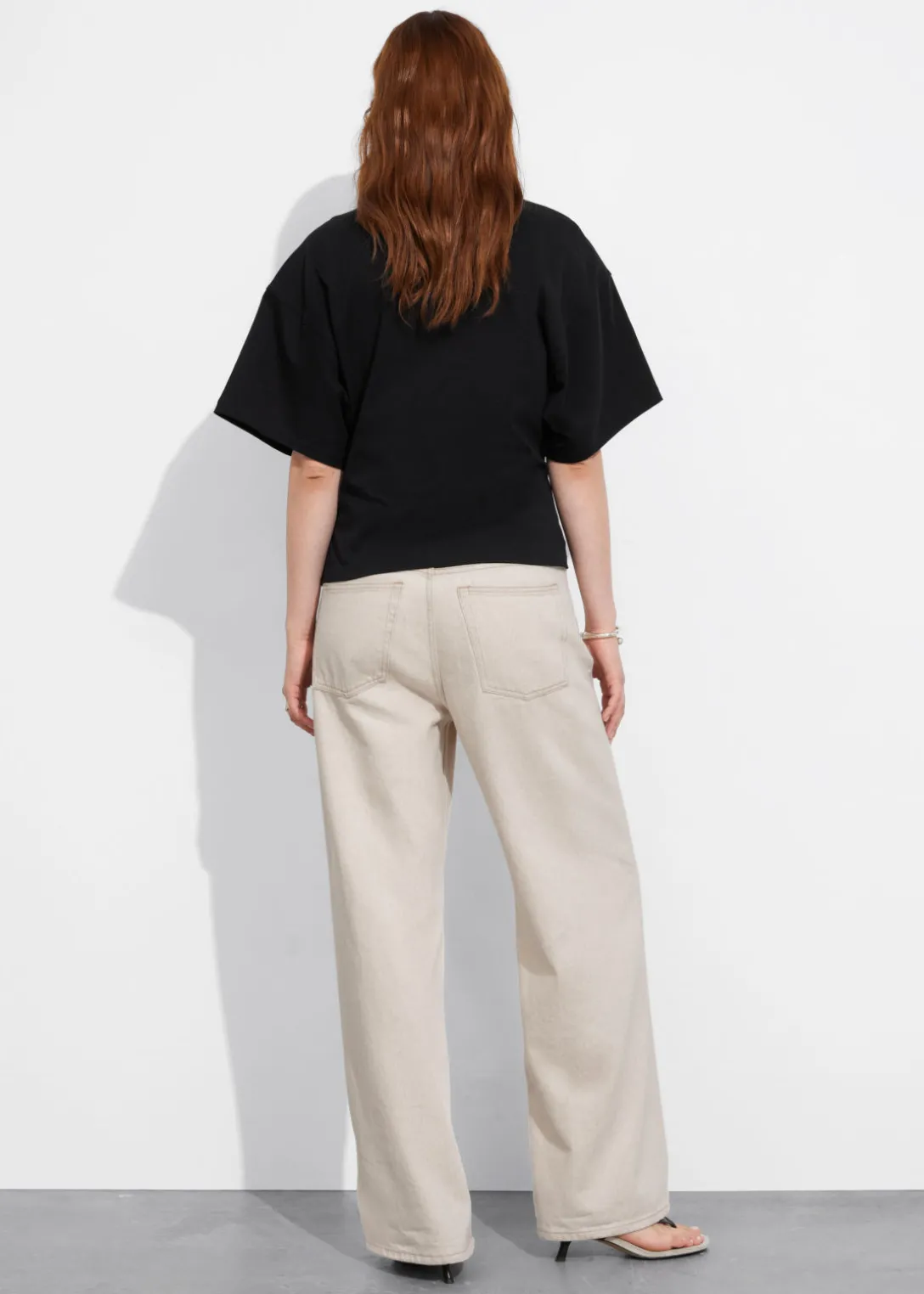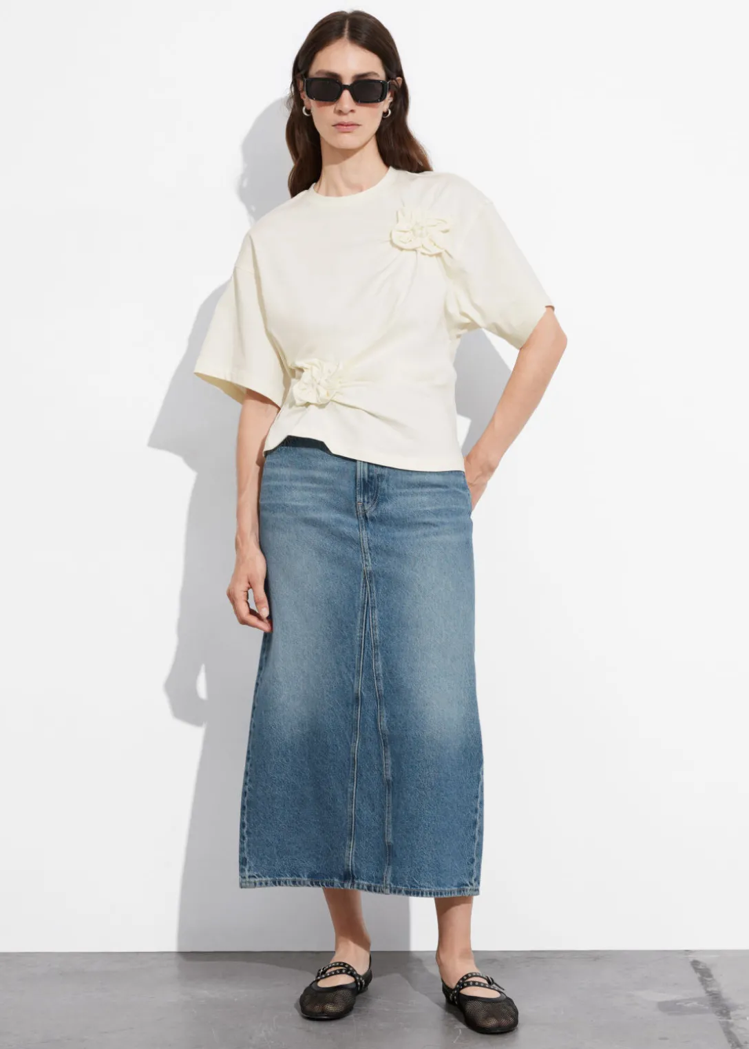 T-shirt à col ras du cou, avec des détails froncés ornés de motifs floraux appliqués ton sur ton.