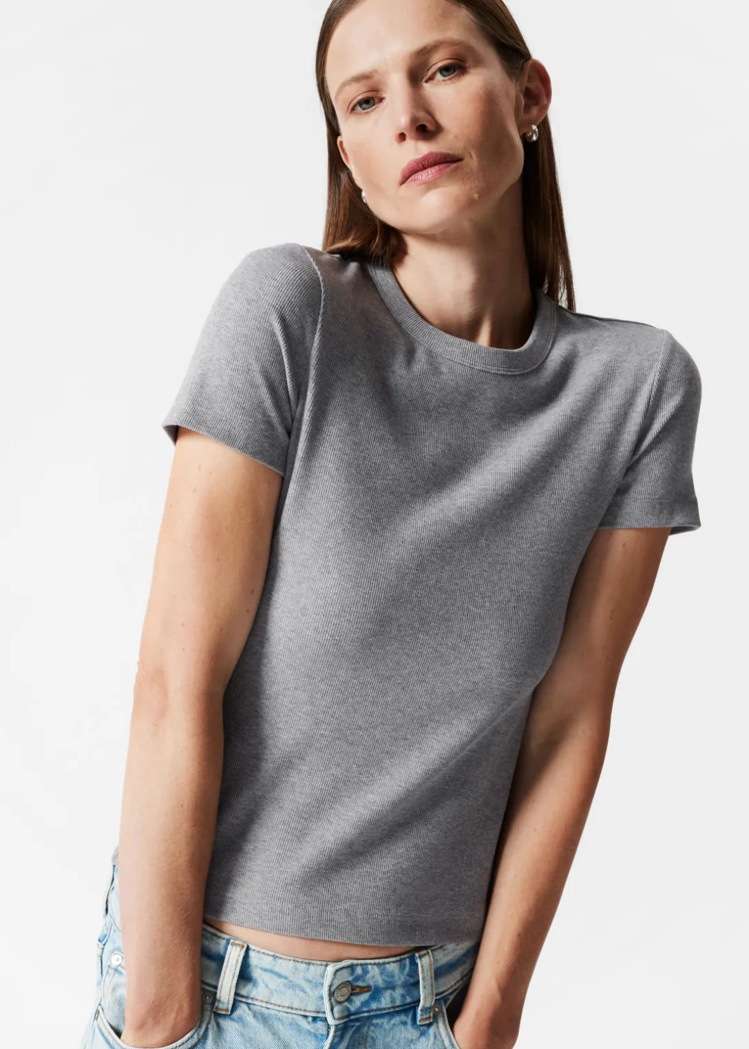 T-shirt court avec des manches courtes et une encolure arrondie.