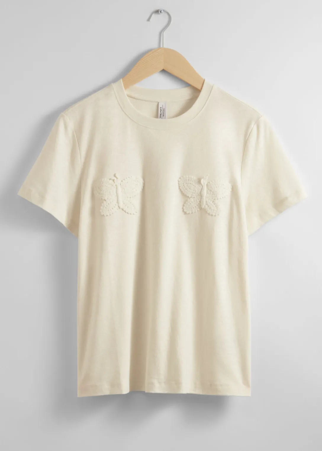 T-shirt classique en lin mélangé, avec un col ras du cou.