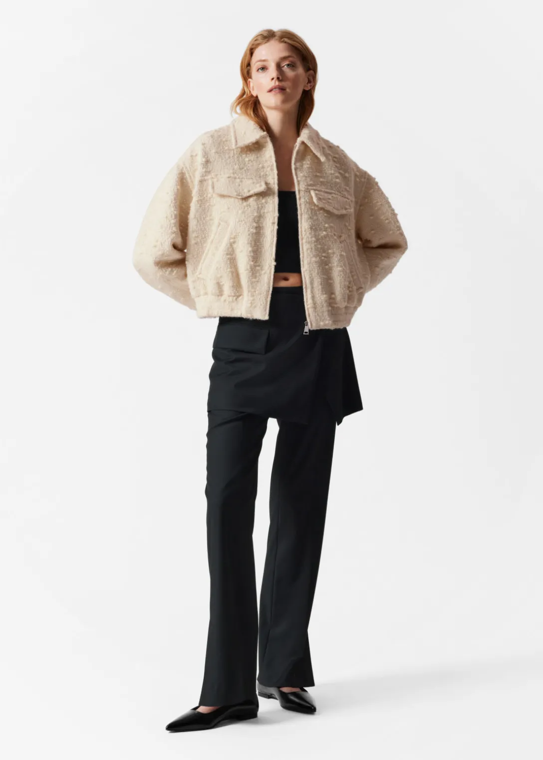 Veste courte à la silhouette oversize, dotée d’une fermeture zippée.