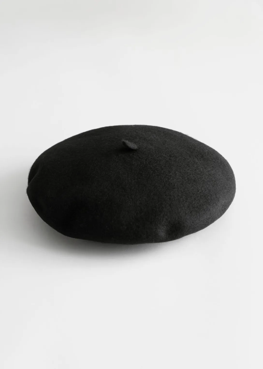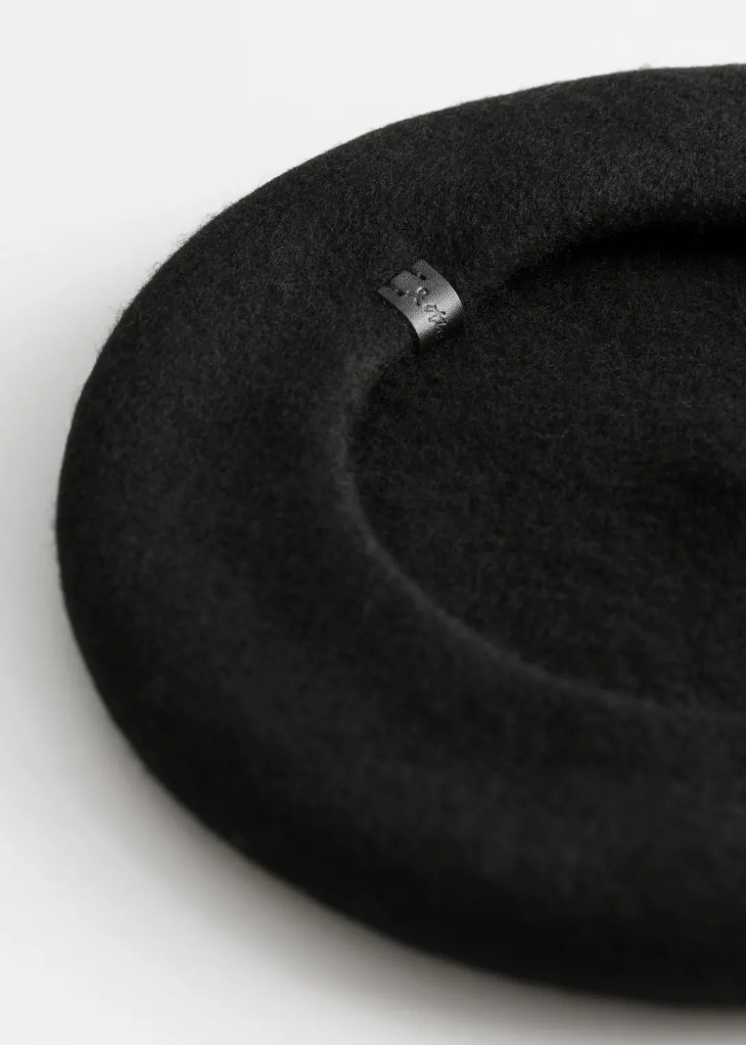 Béret classique en laine douce, orné d’une languette sur le dessus et d’un petit logo « & Other Stories » en cuir.