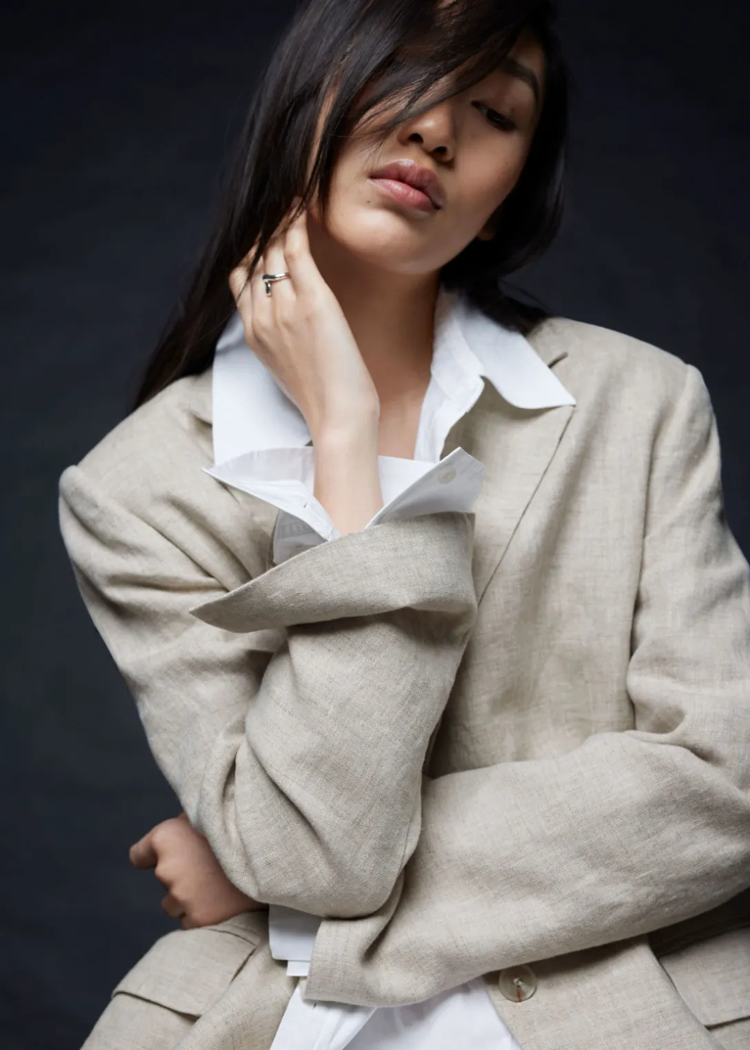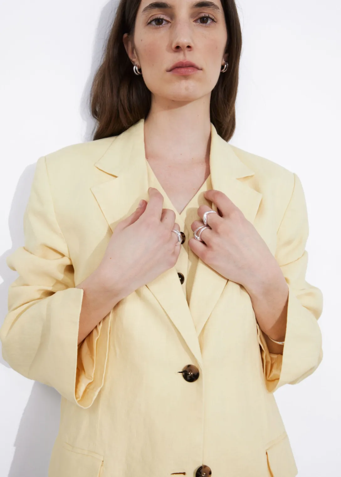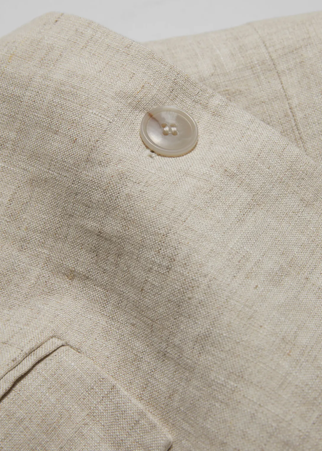 Blazer à boutonnage simple en lin aérien, avec des épaulettes.
