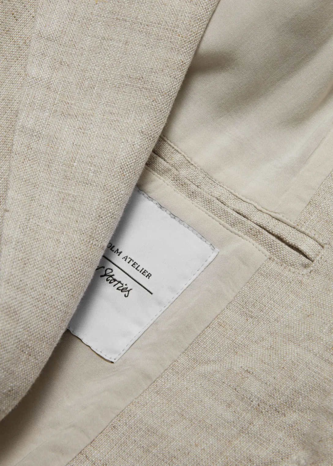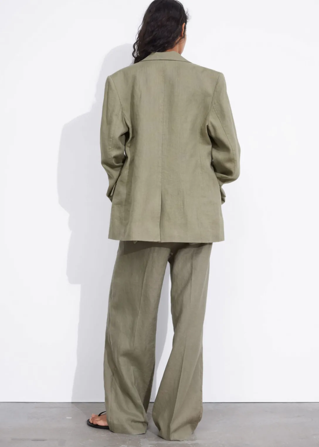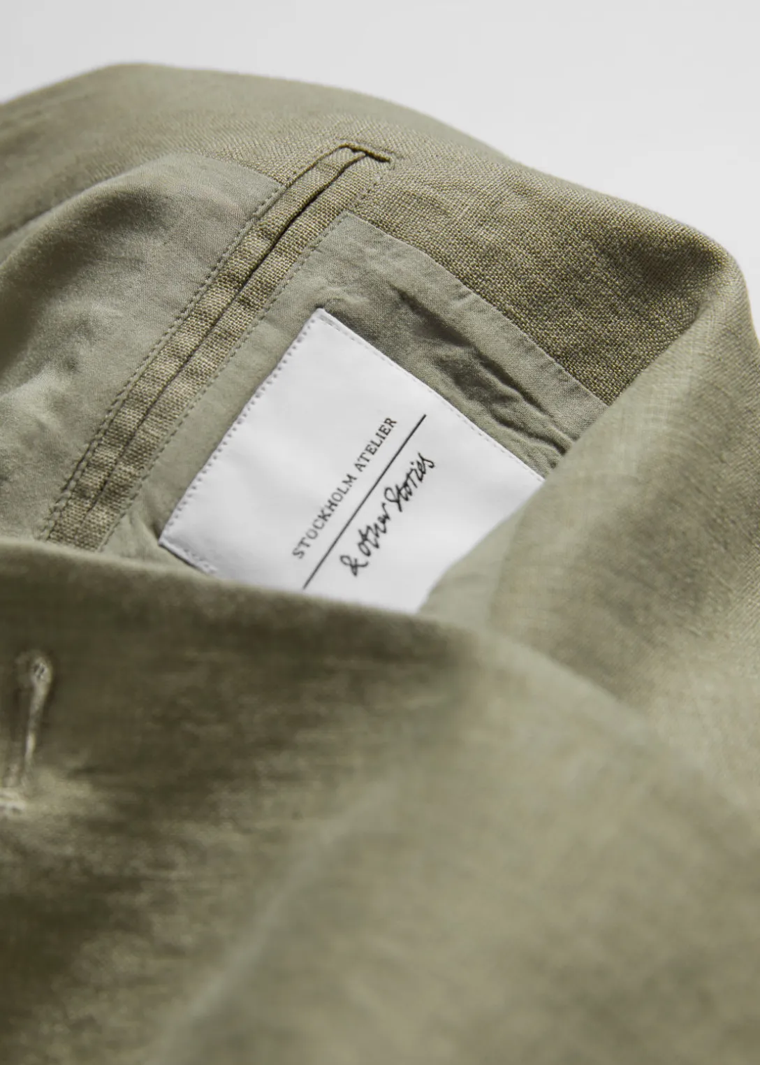 Blazer à boutonnage simple en lin aérien, avec des épaulettes.