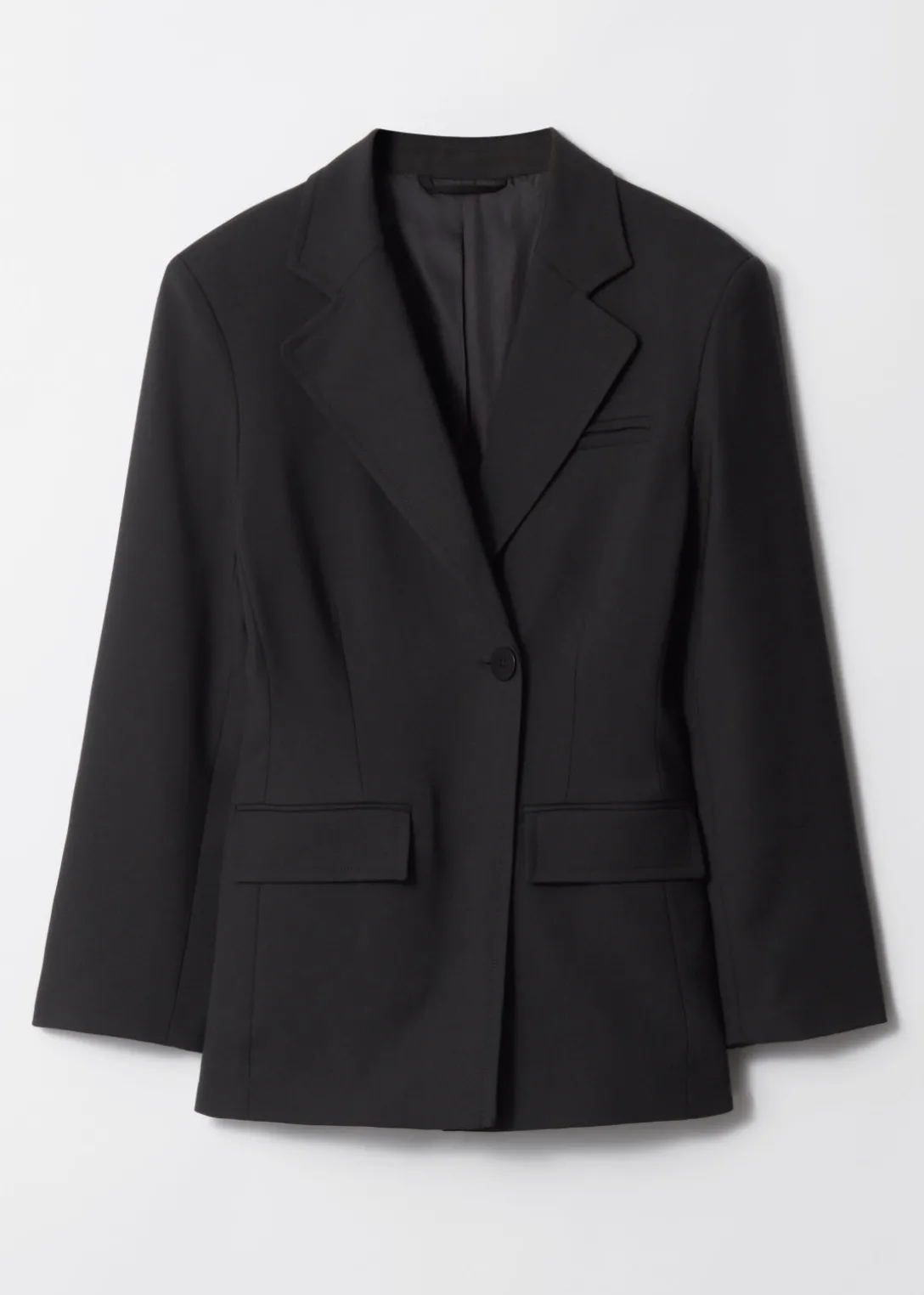 Blazer à boutonnage simple, avec des épaulettes, une silhouette cintrée et des poignets avec des pattes fonctionnels.