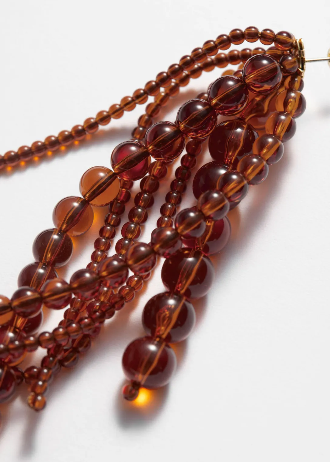 Ces boucles d’oreilles remarquables sont ornées de perles en verre qui se balancent élégamment lorsque vous bougez. Elles effleurent le menton et présentent des fermoirs papillon confectionnés en laiton sans nickel.