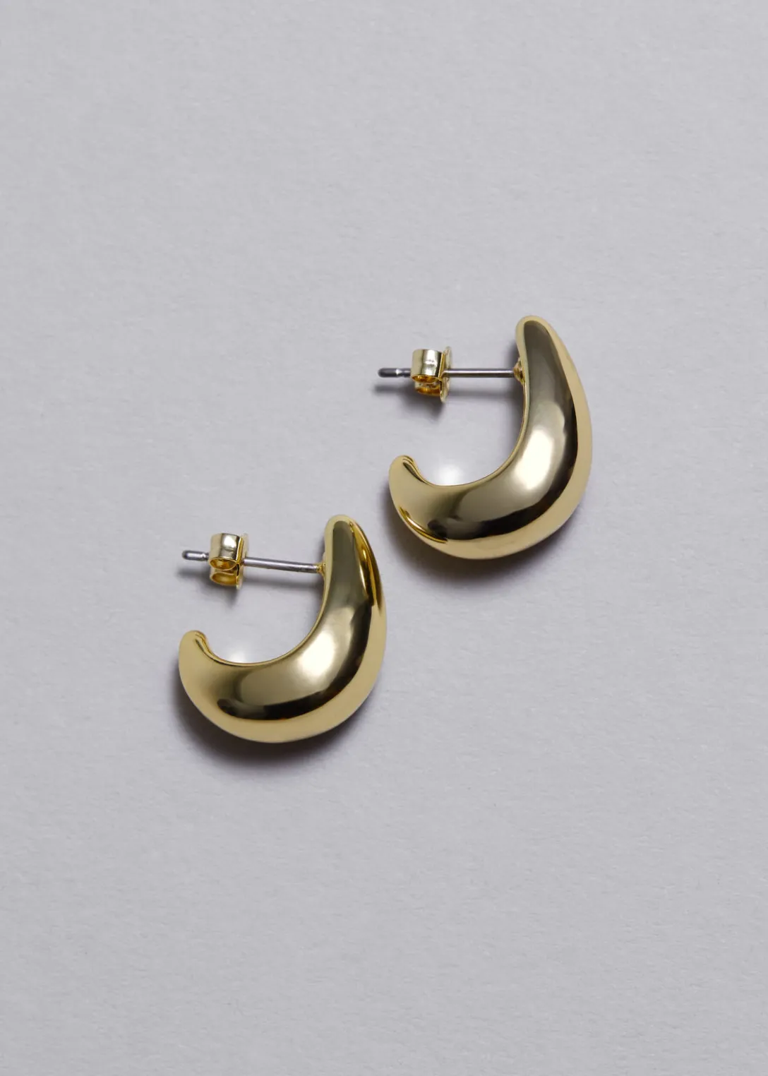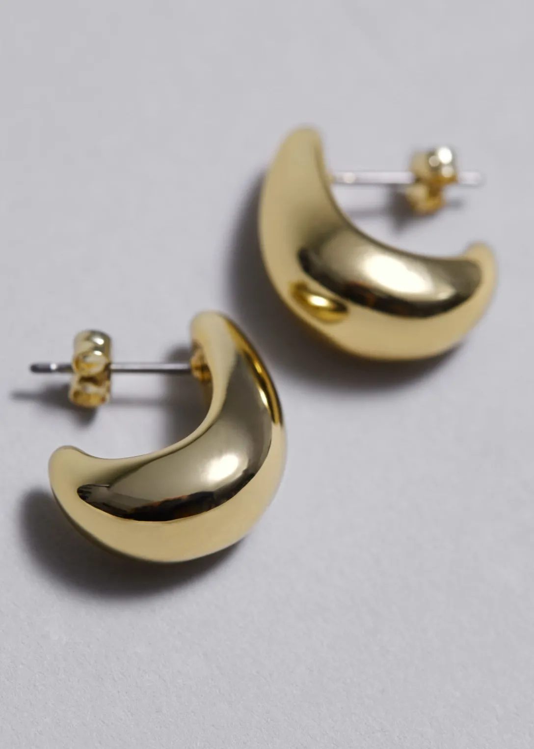 Ces boucles d’oreilles en forme de goutte sont fabriquées en laiton poli et présentent une forme incurvée qui épouse élégamment le lobe de l’oreille.