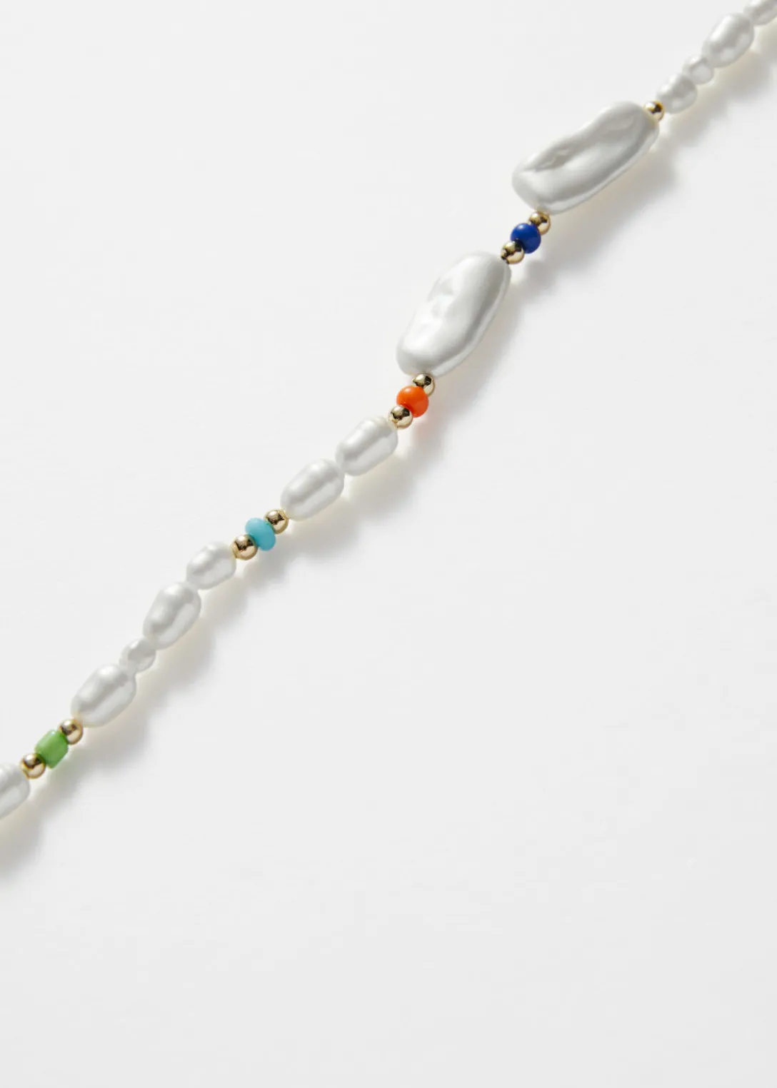 Bracelet orné de perles synthétiques de formes et de tailles différentes, mais aussi de perles éclatantes apportant une touche de couleur parfaite. Confectionnée en laiton poli, sa chaîne ajustable vous permet de régler la longueur.