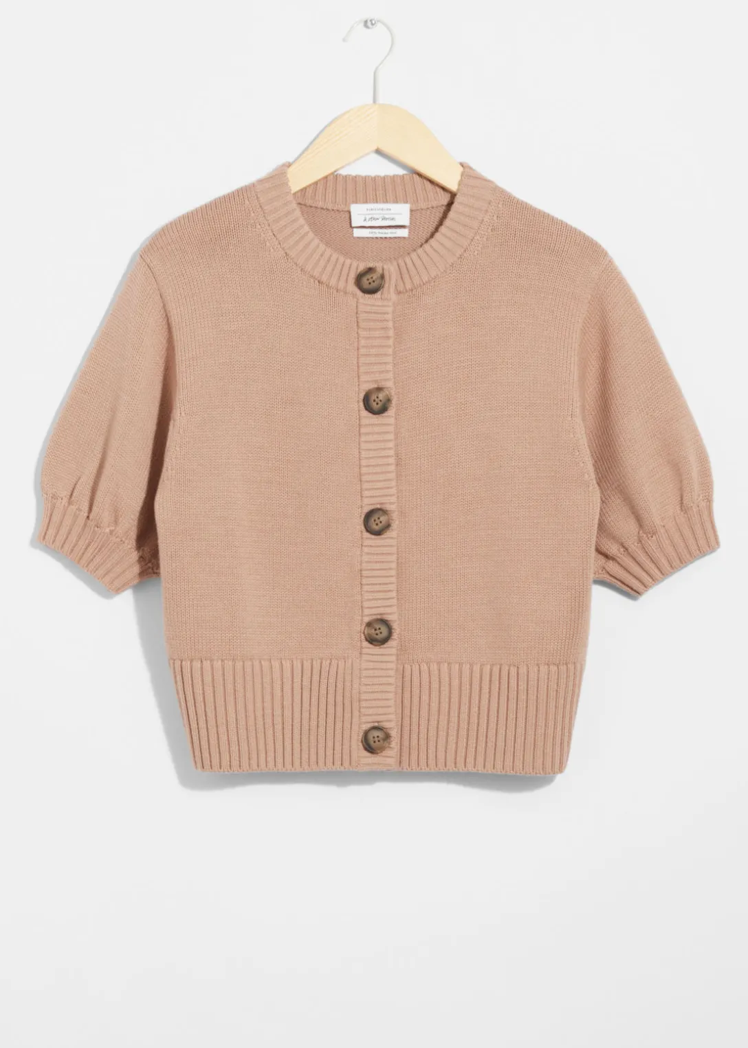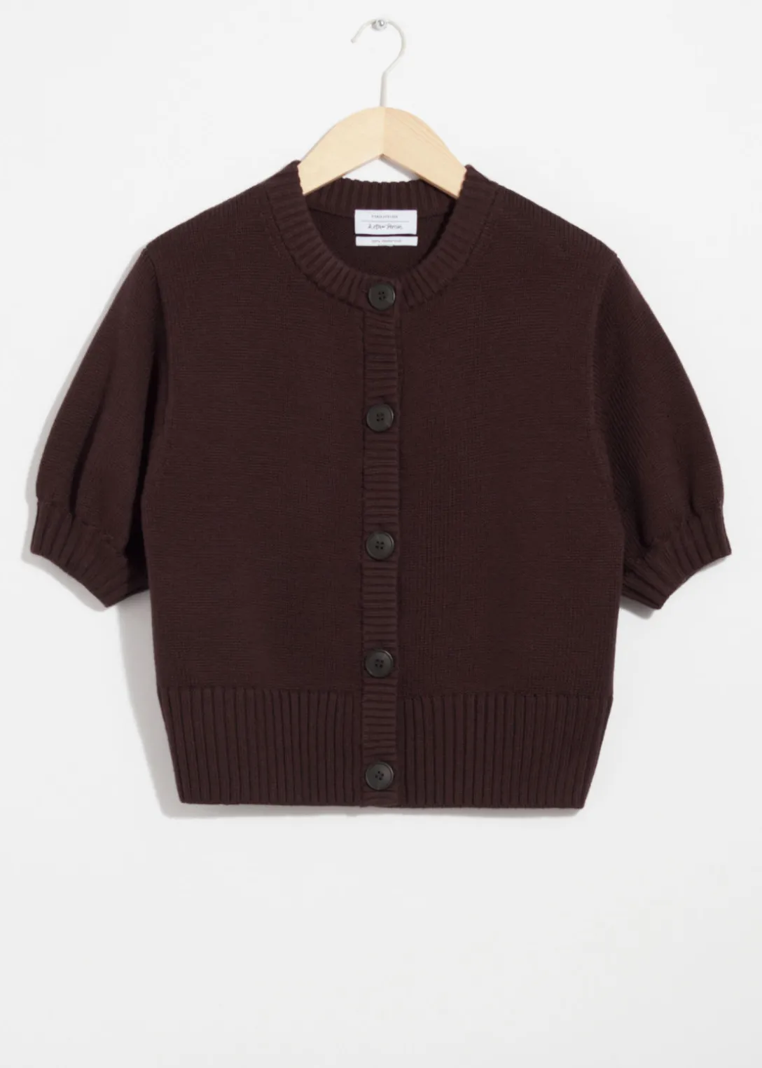 Cardigan en laine mérinos, avec manches ballon et fermeture à 5 boutons.