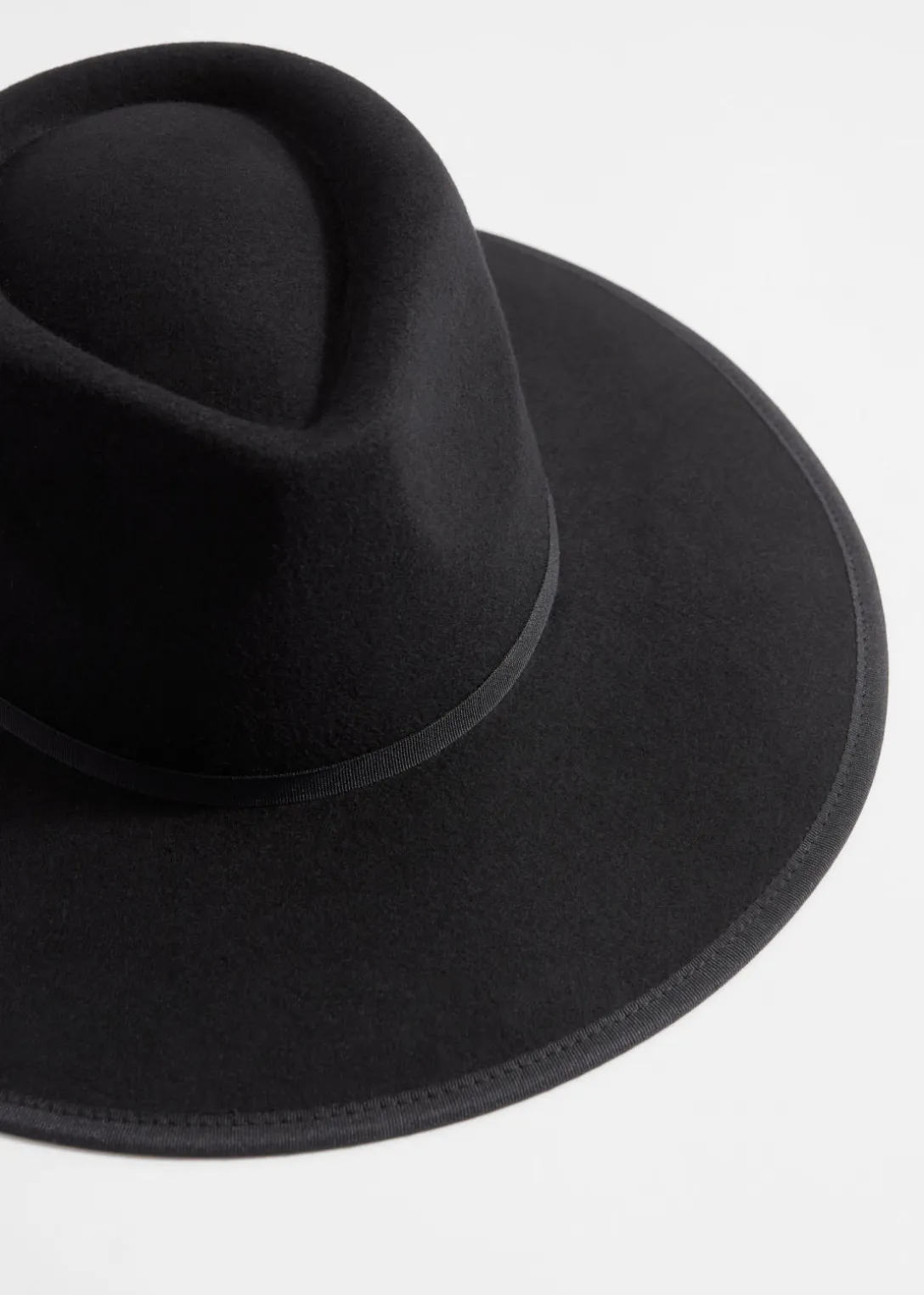 Ce chapeau classique présente une confection sans couture qui lui donne une apparence lisse et épurée. Confectionné en feutre de laine structuré, il est doté d’un divot peu profond sur le dessus et d’une fine bande gros-grain ton sur ton autour de la couronne.