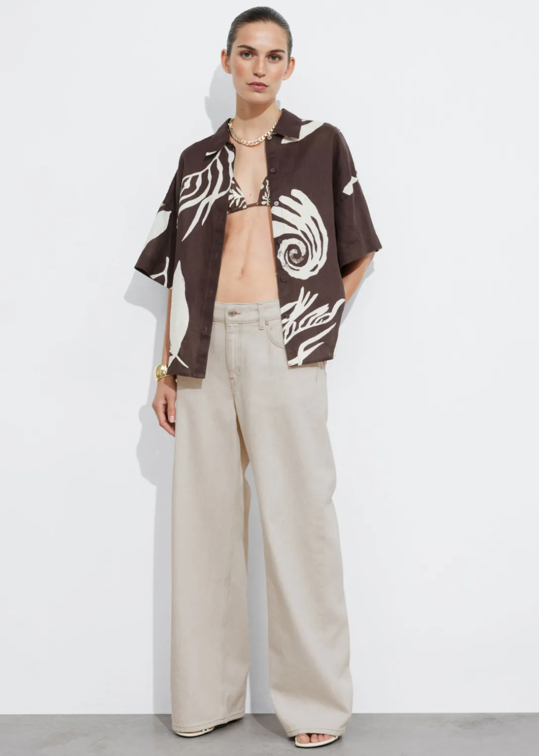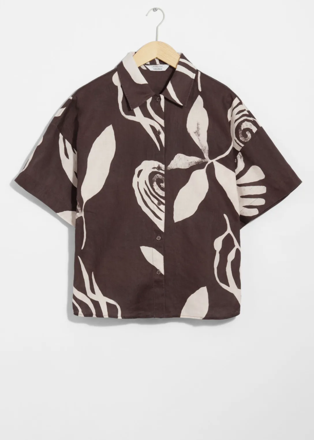 Chemise à manches courtes en lin aéré. Dotée d’une silhouette oversize avec des fermetures à boutons ton sur ton.