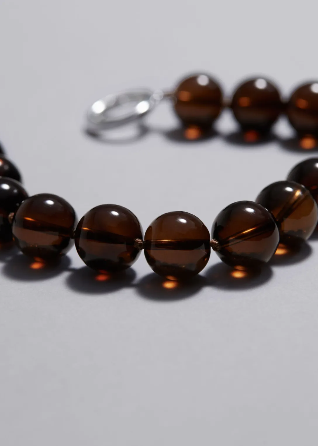 Collier court en perles de pierre avec un fermoir délicat à anneau en O.
