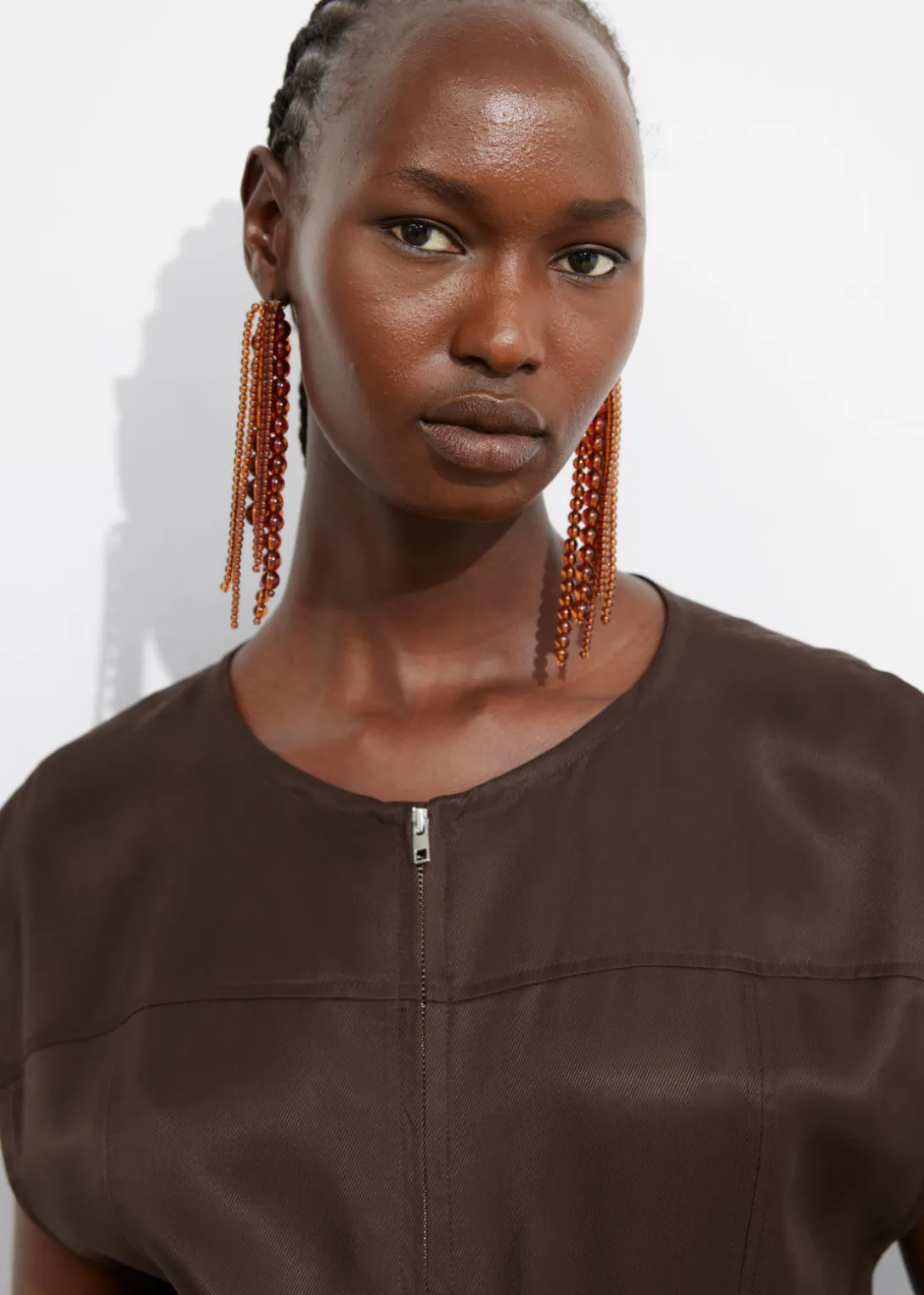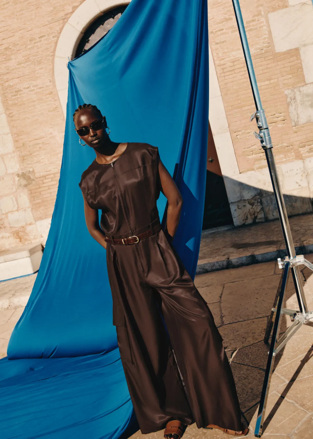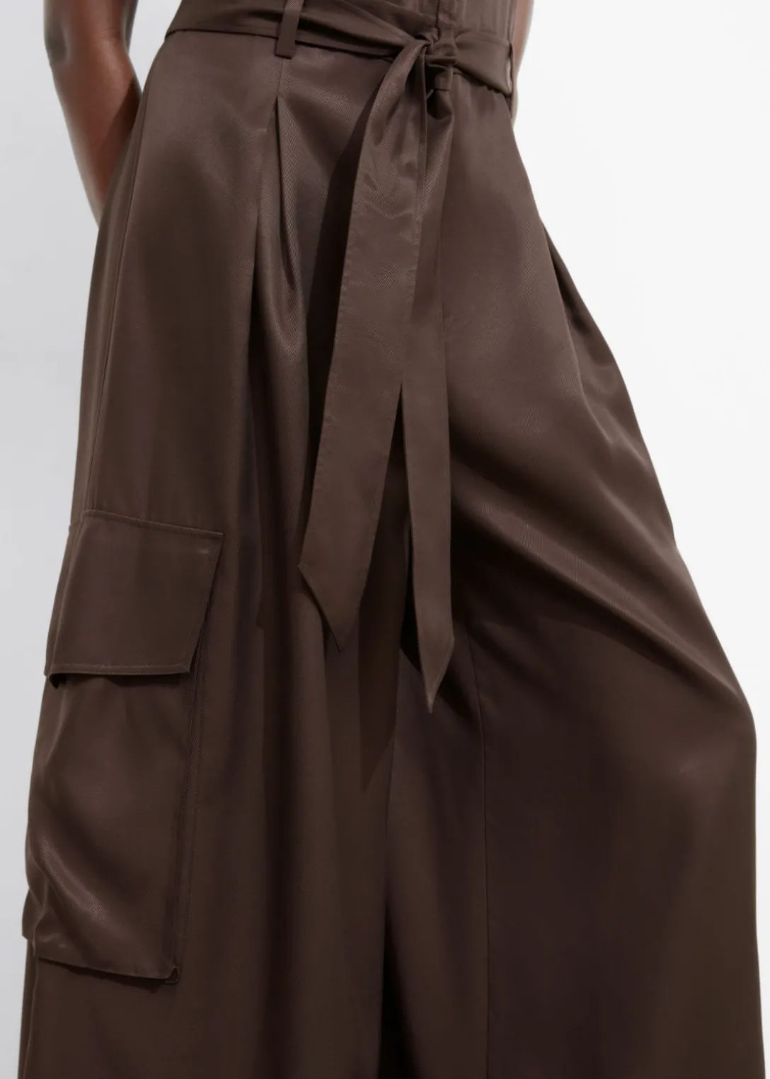 Combinaison zippée à ceinture avec des détails de style utilitaire. Dotée de grandes poches plaquées au niveau des jambes.