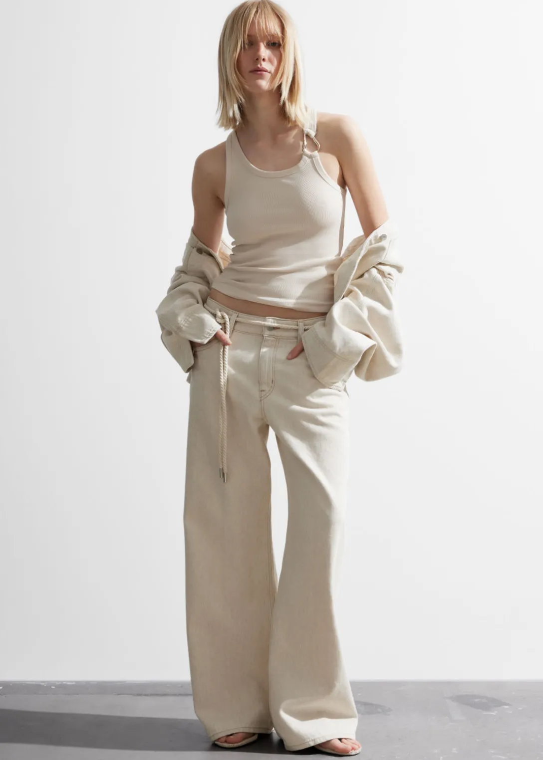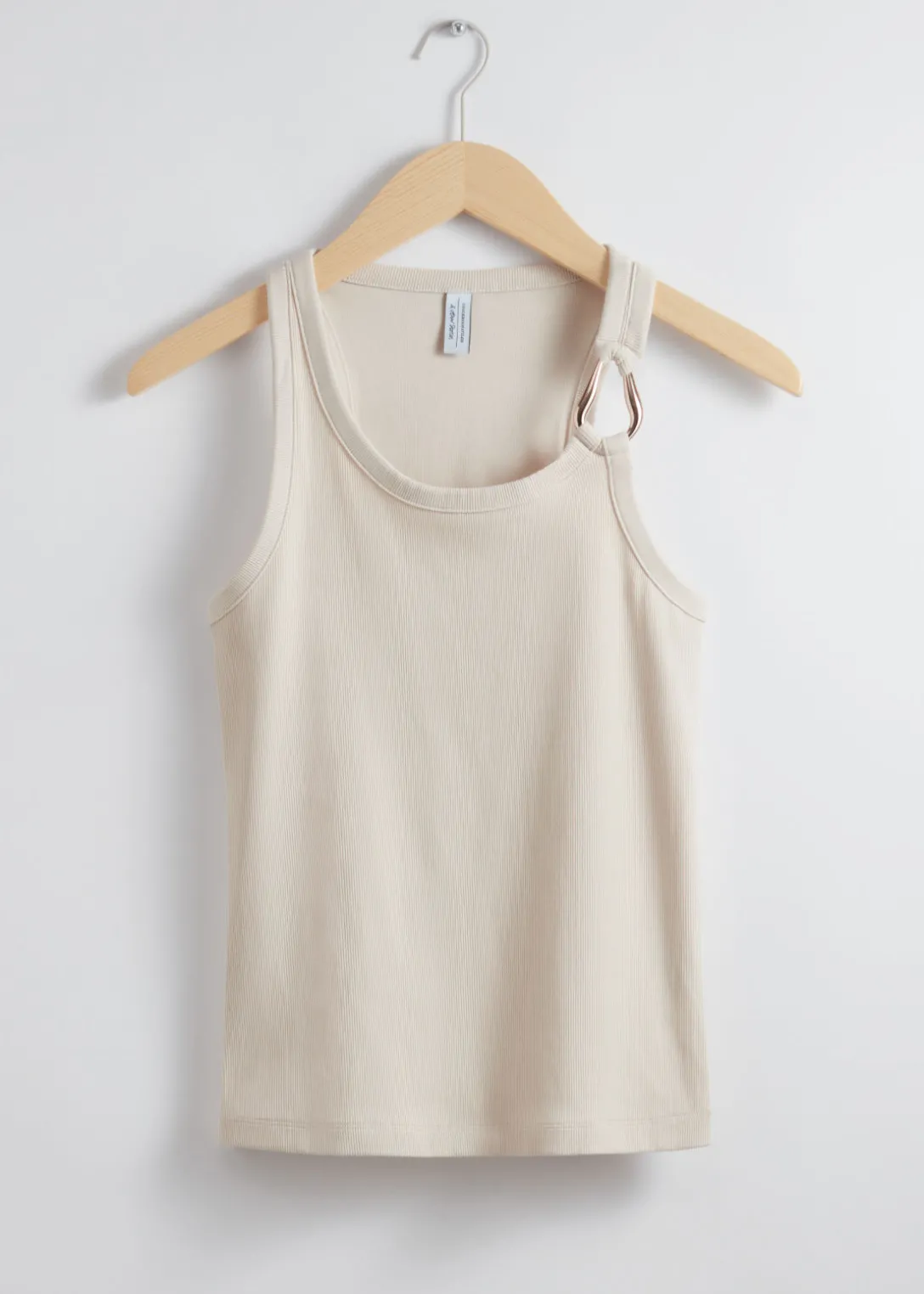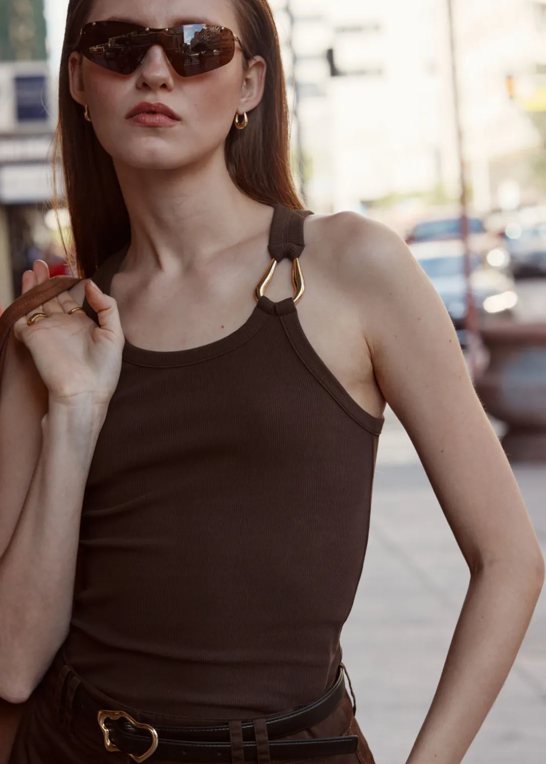 Débardeur orné d’une boucle en métal doré au niveau de l’épaule.