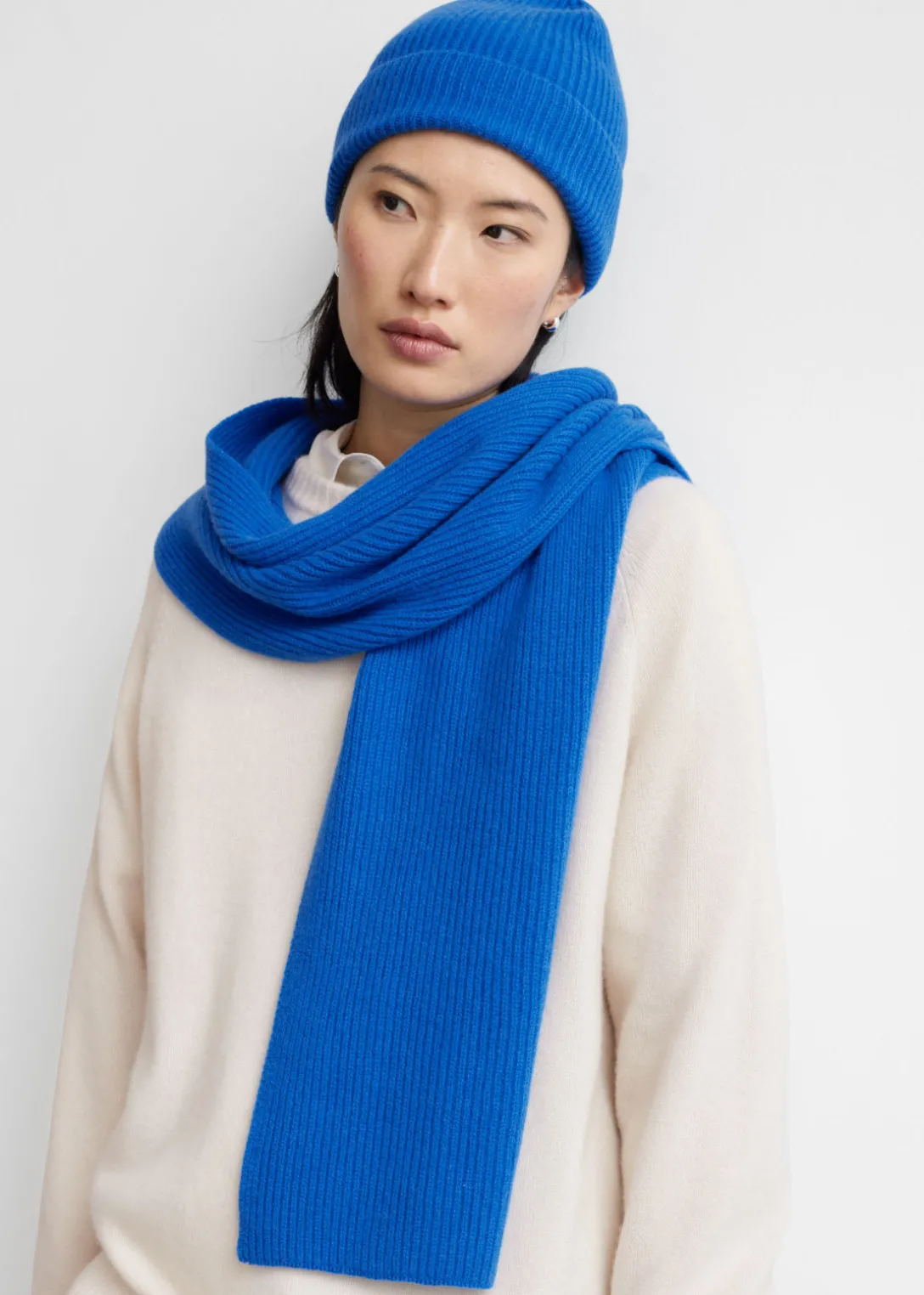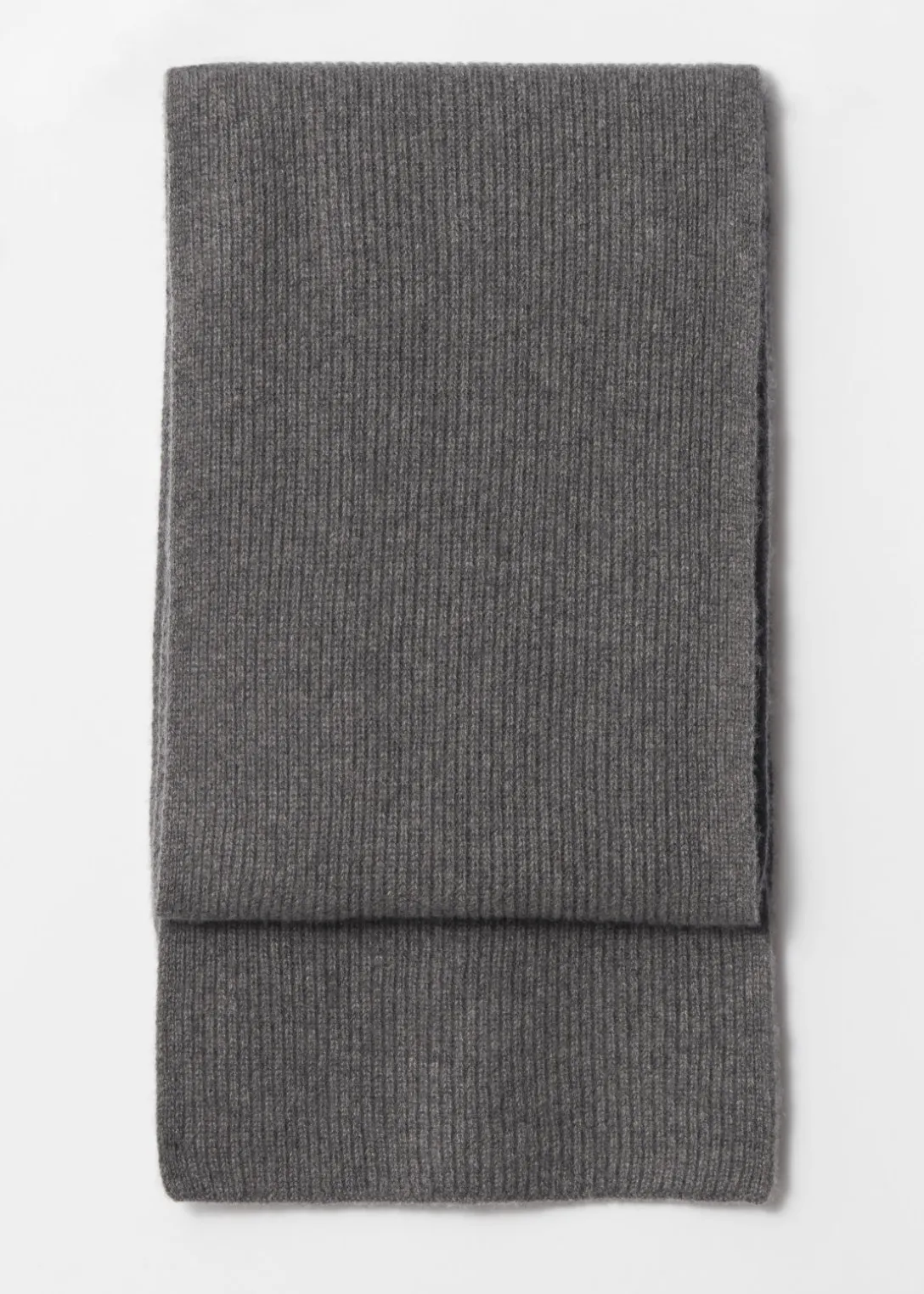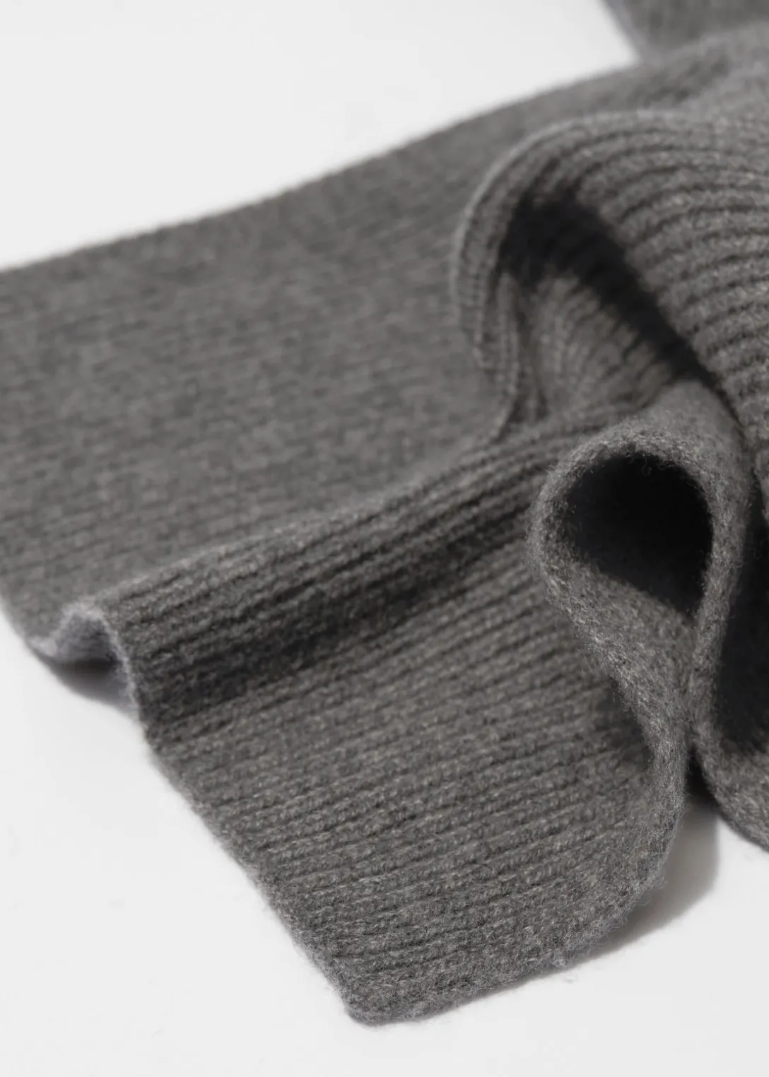 Écharpe tricotée en cachemire doux avec une finition côtelée.