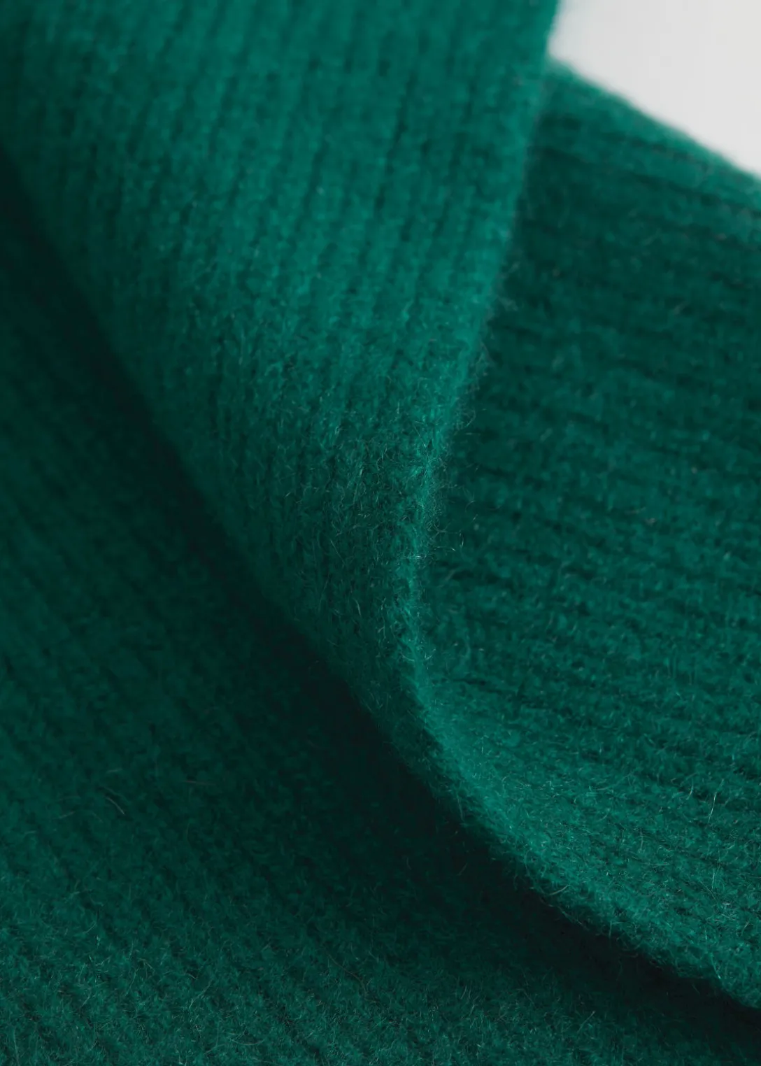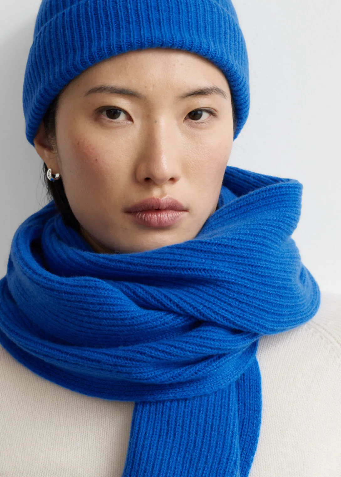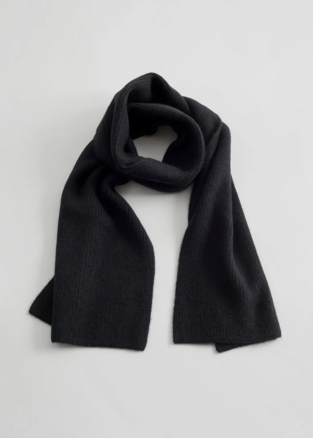 Écharpe tricotée en cachemire doux avec une finition côtelée.