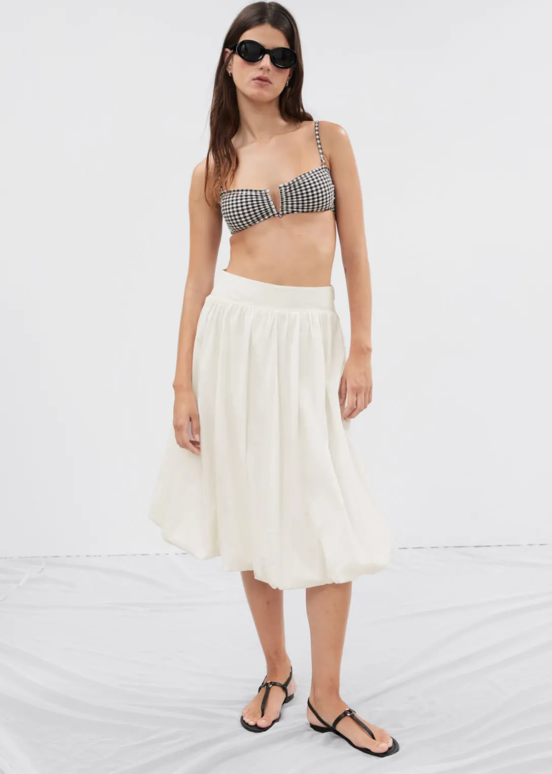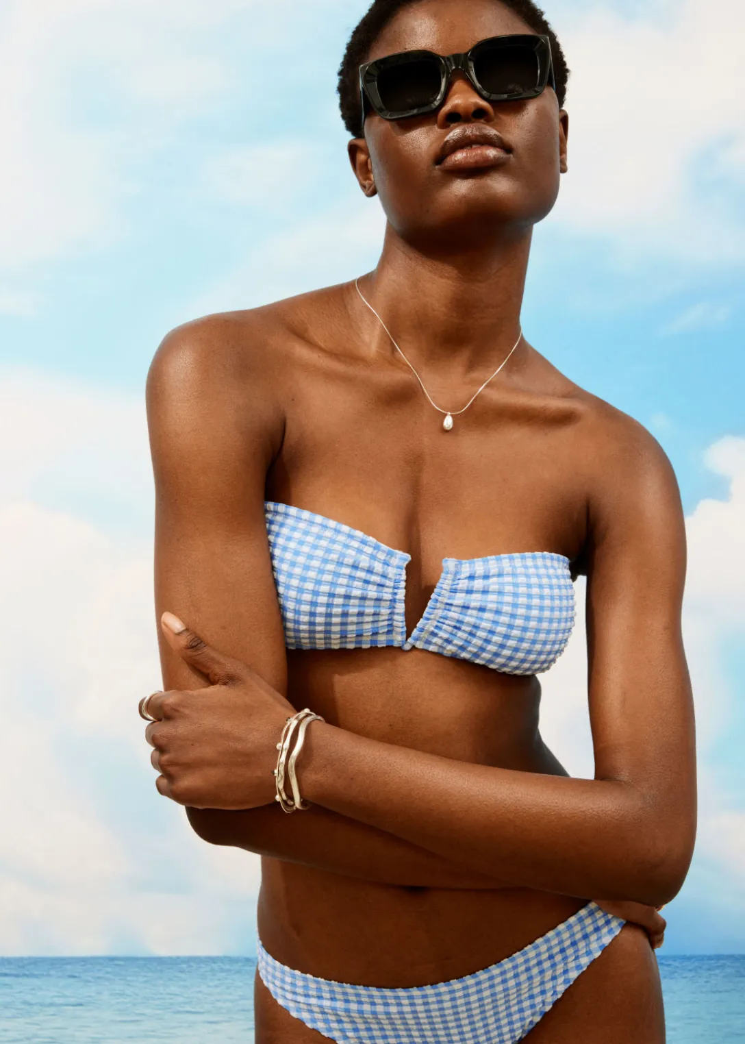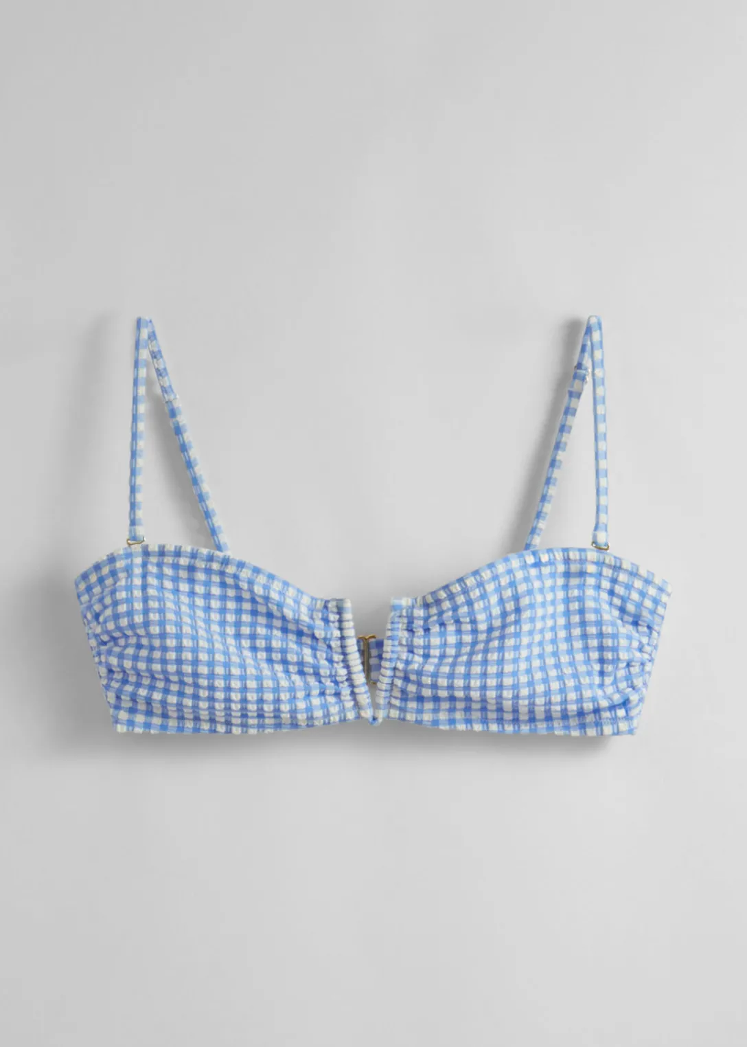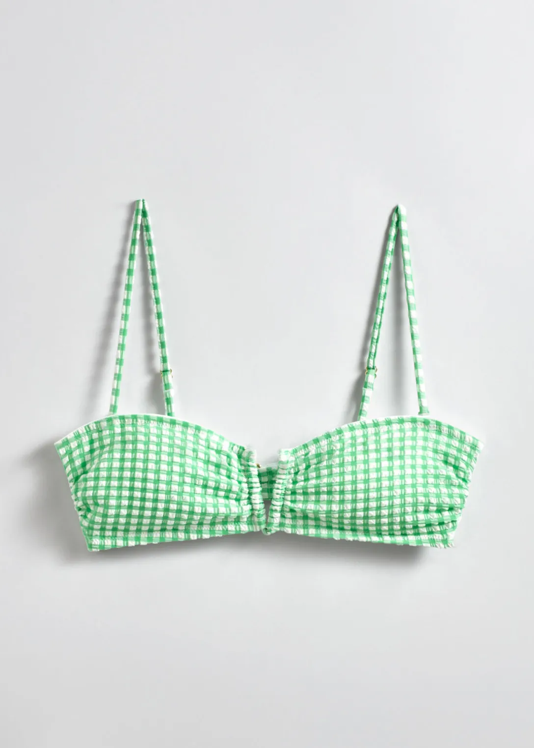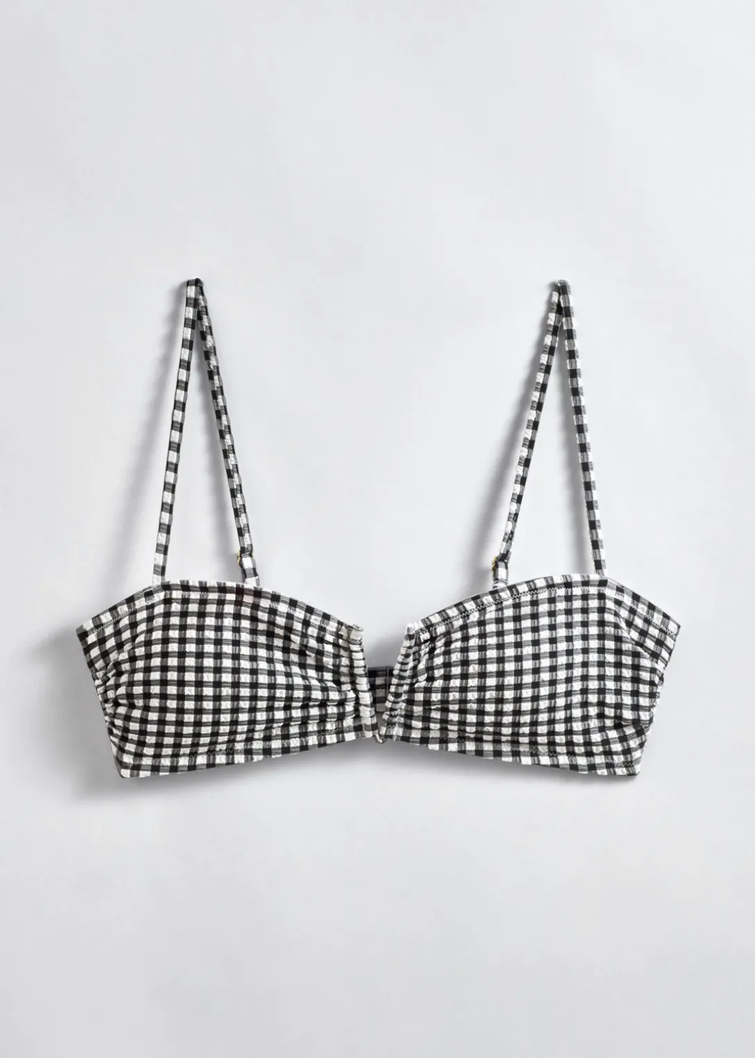 Haut de bikini bandeau, avec des bretelles fines, réglables et amovibles.