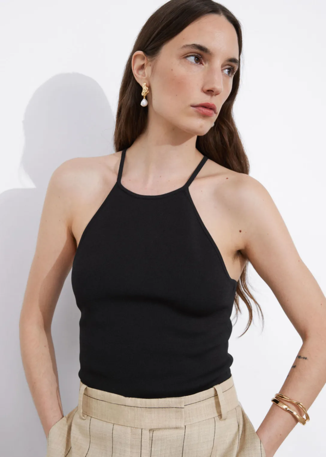Haut dos nu ajusté avec des bretelles fines croisées au dos.