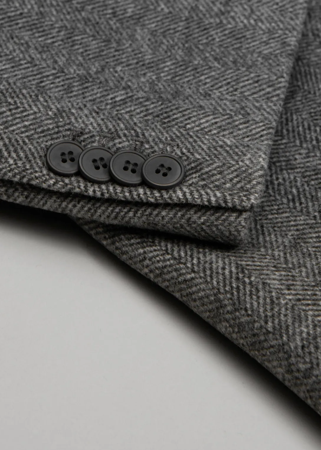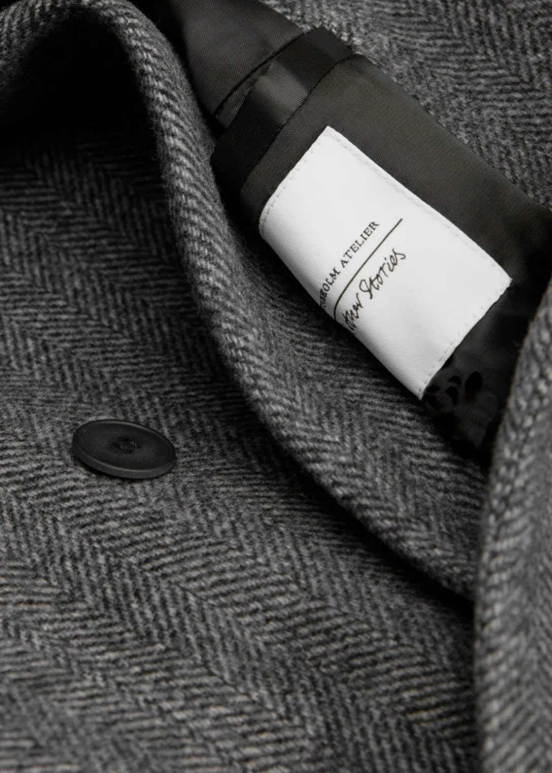Manteau décontracté en laine, avec double boutonnage et chevrons.