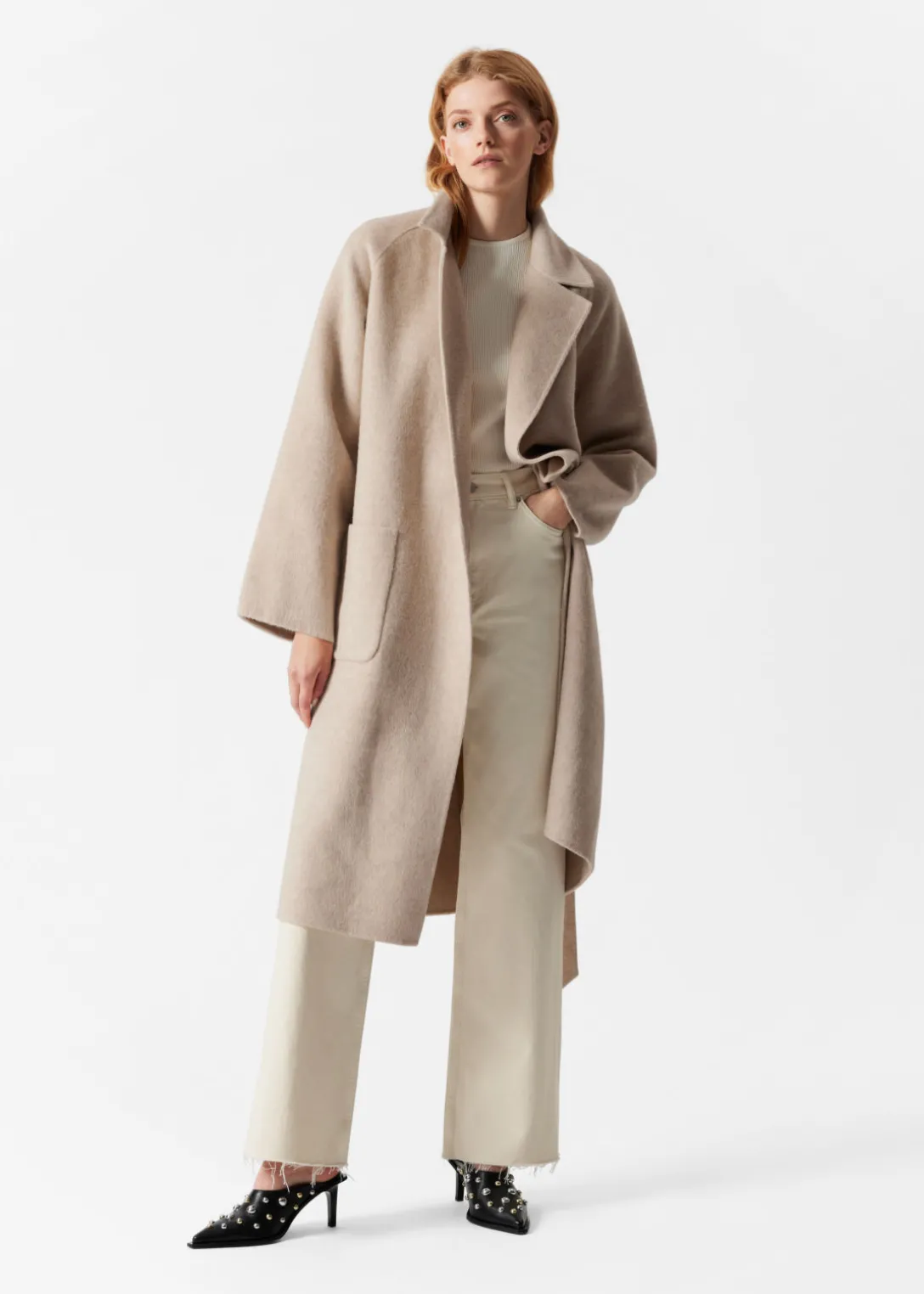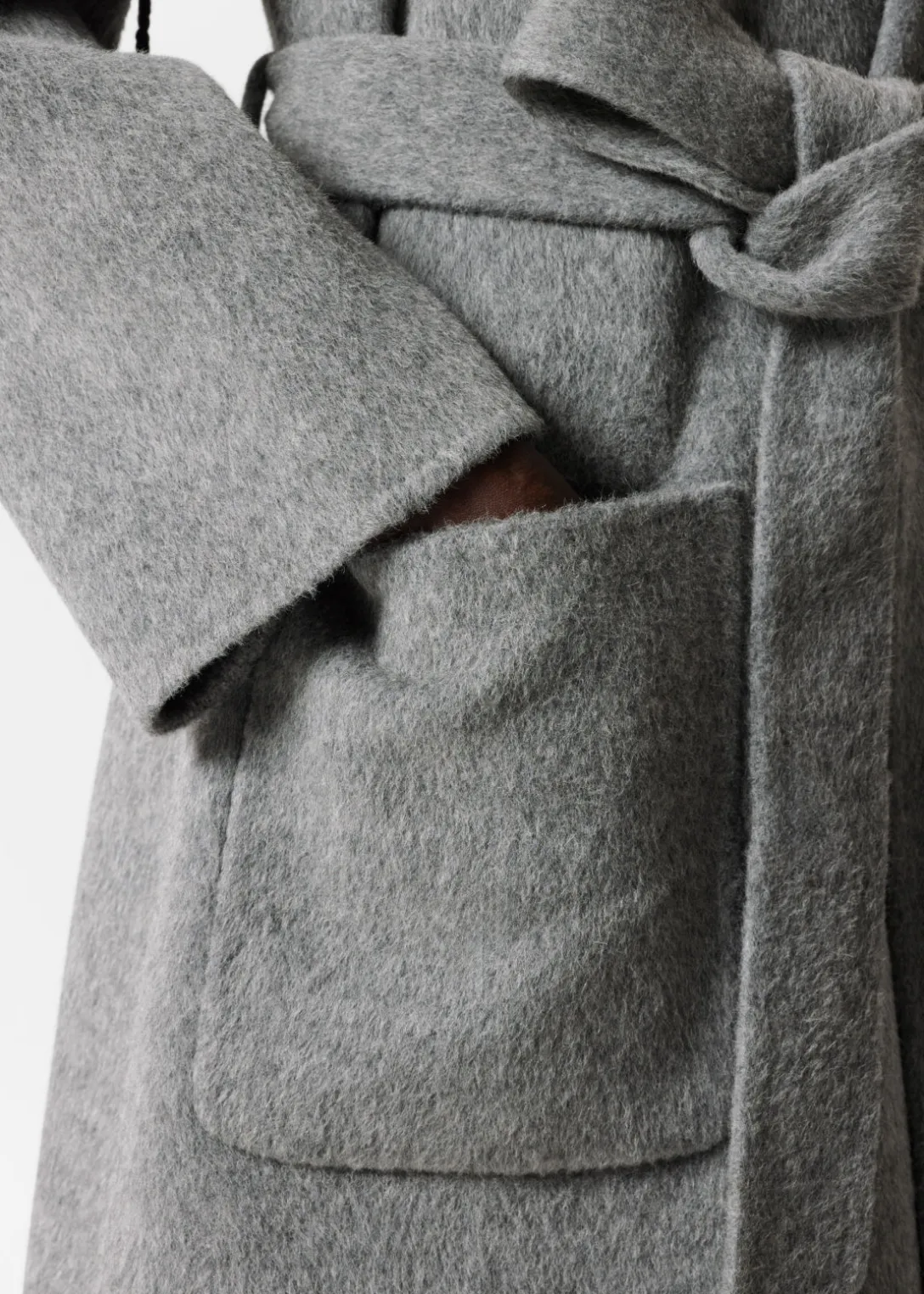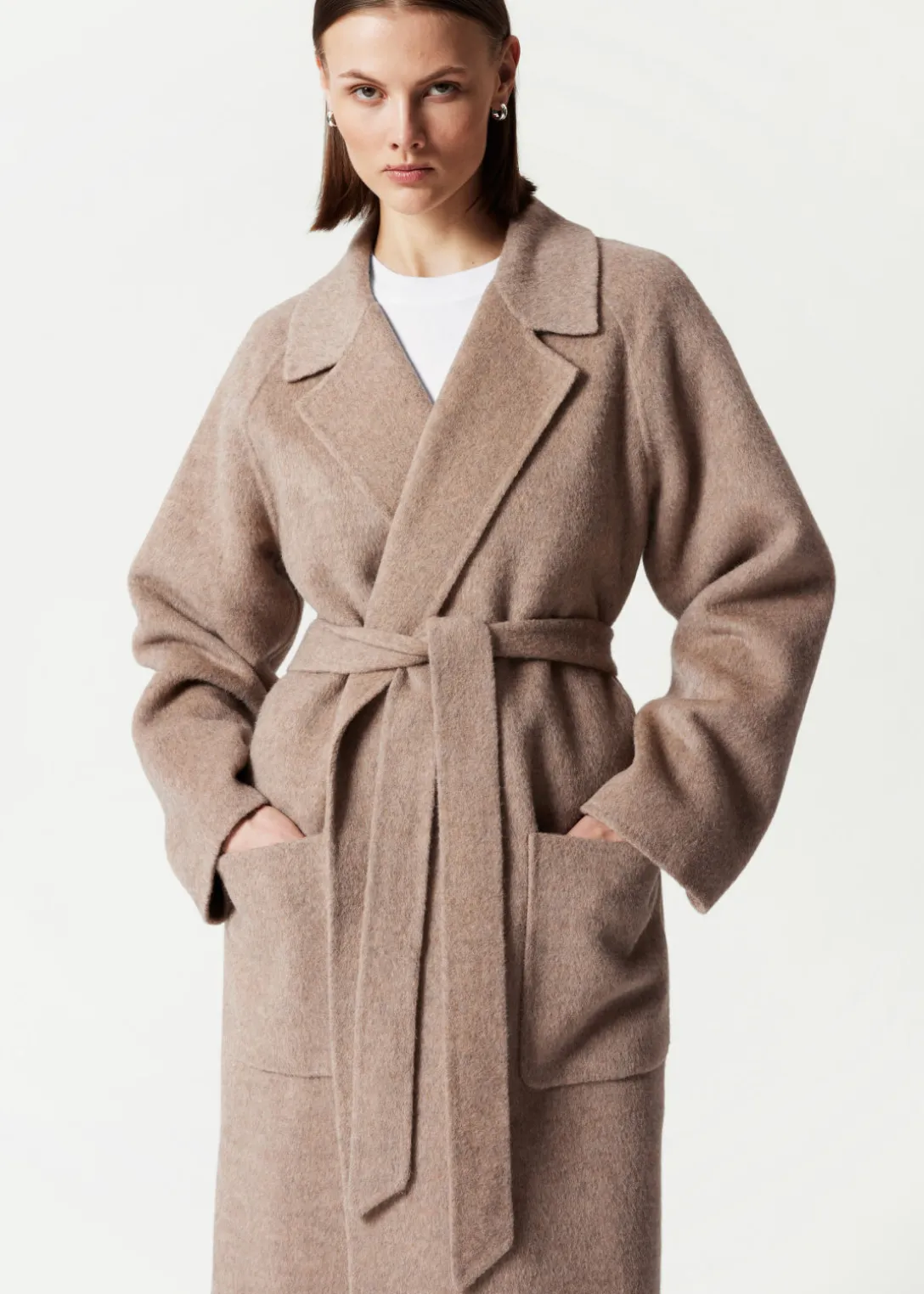 Ce manteau décontracté se ferme à l’aide d’une ceinture assortie ton sur ton à nouer. Il est doté de grandes poches plaquées.