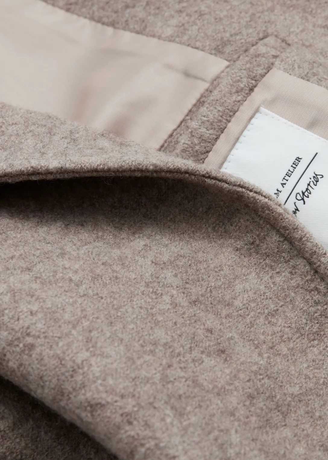 Manteau ample en laine avec un revers superposé et une ceinture ton sur ton assortie à nouer.