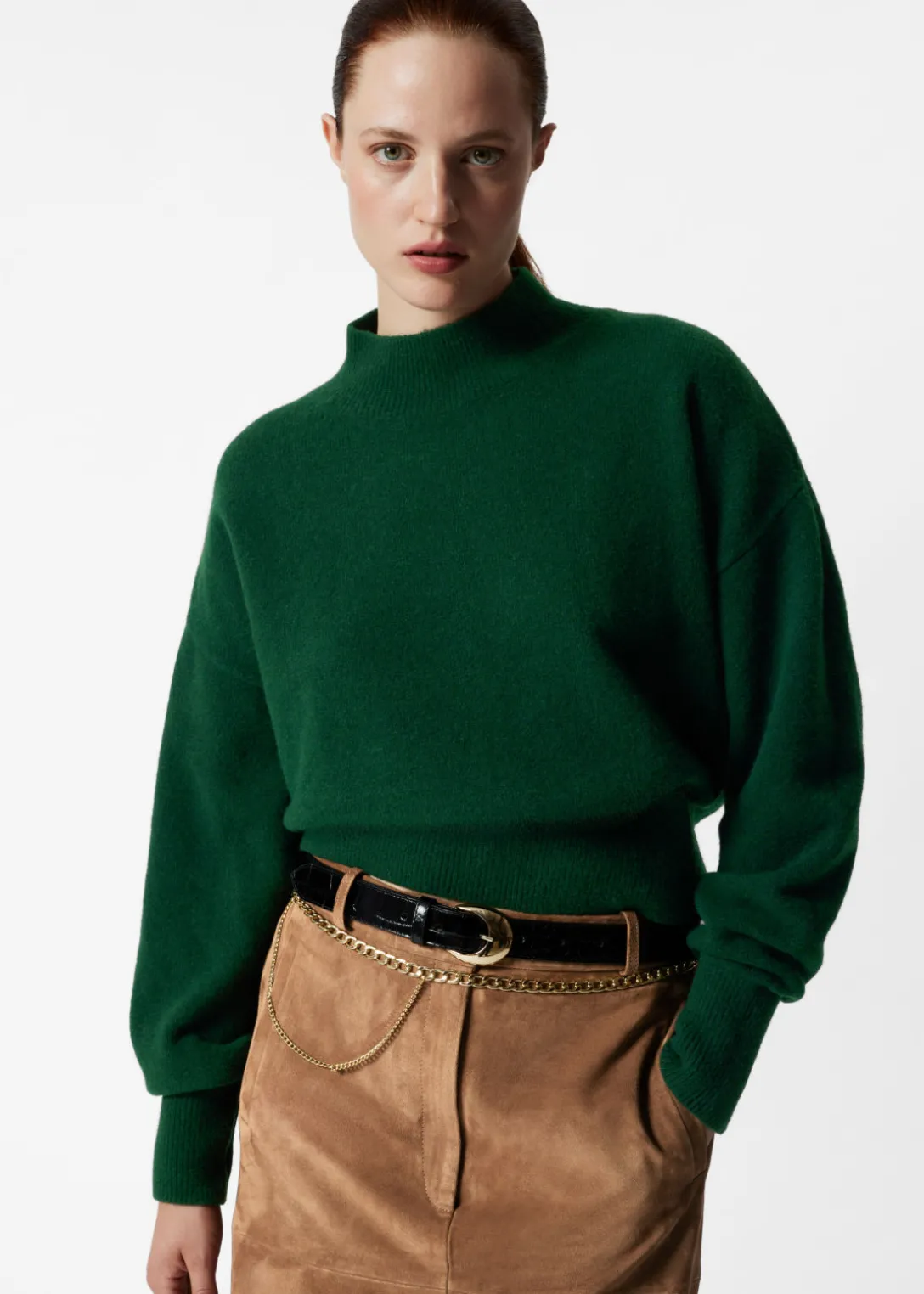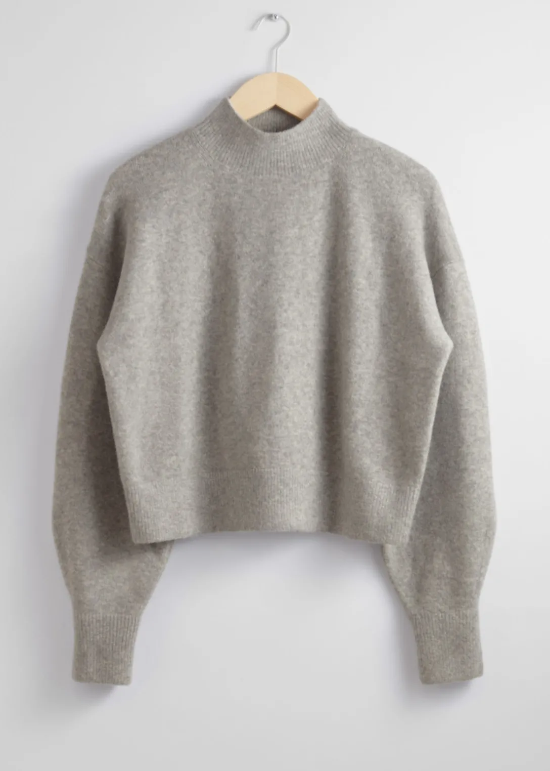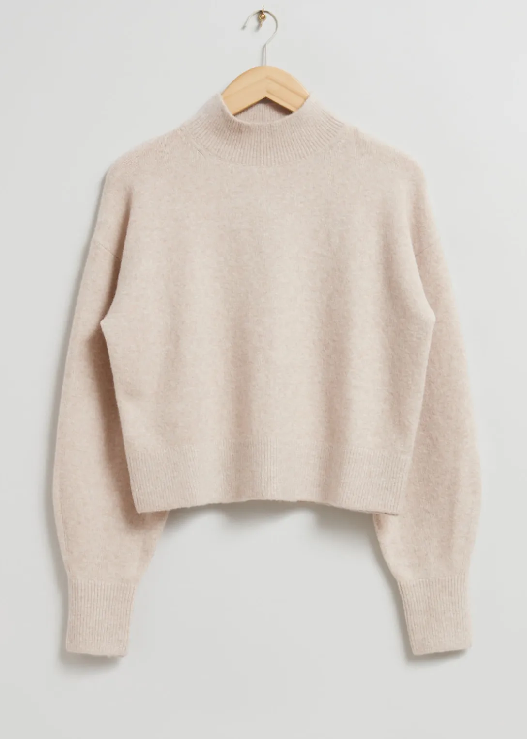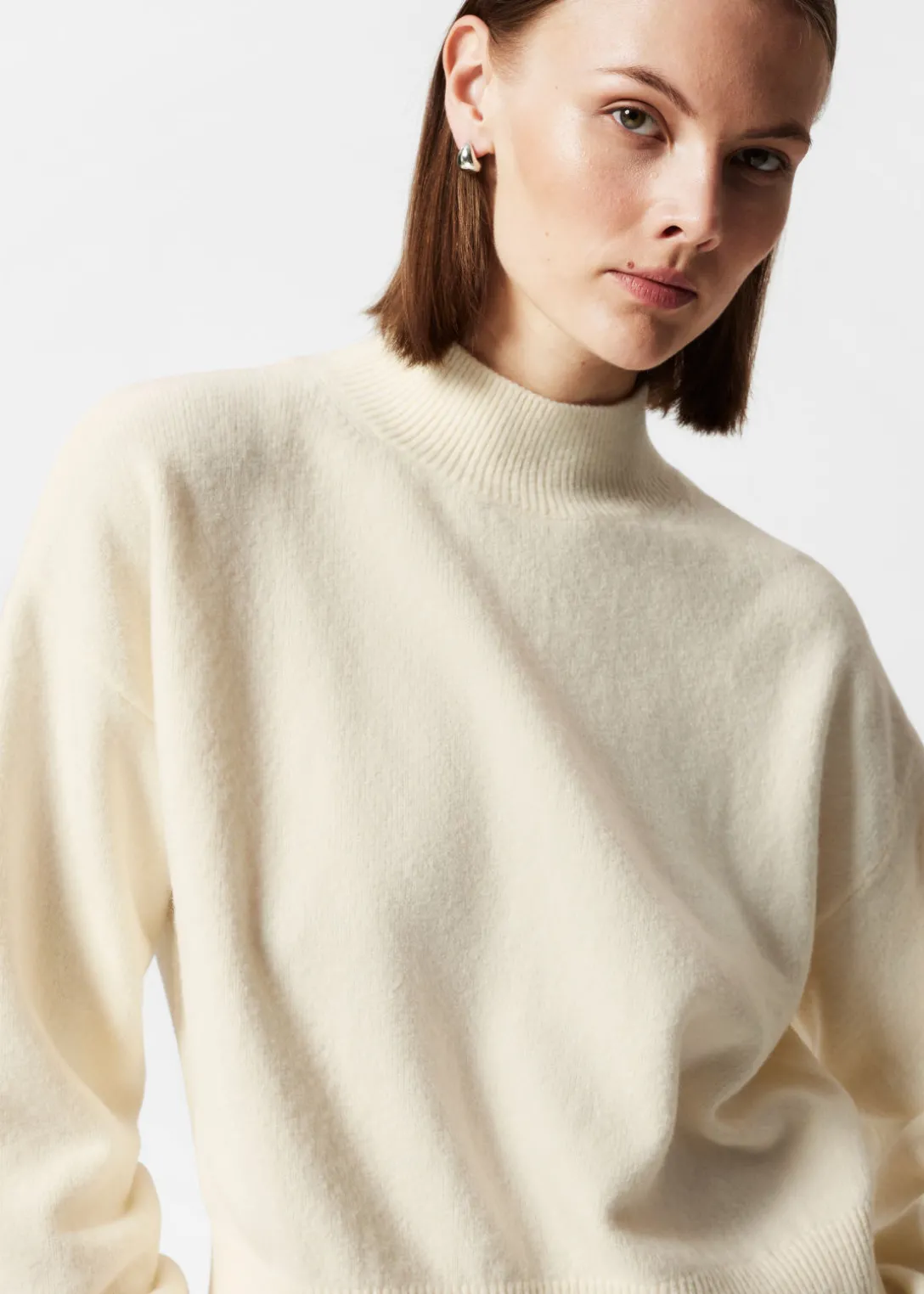 Pull en maille à col montant avec épaules tombantes et coupe droite.