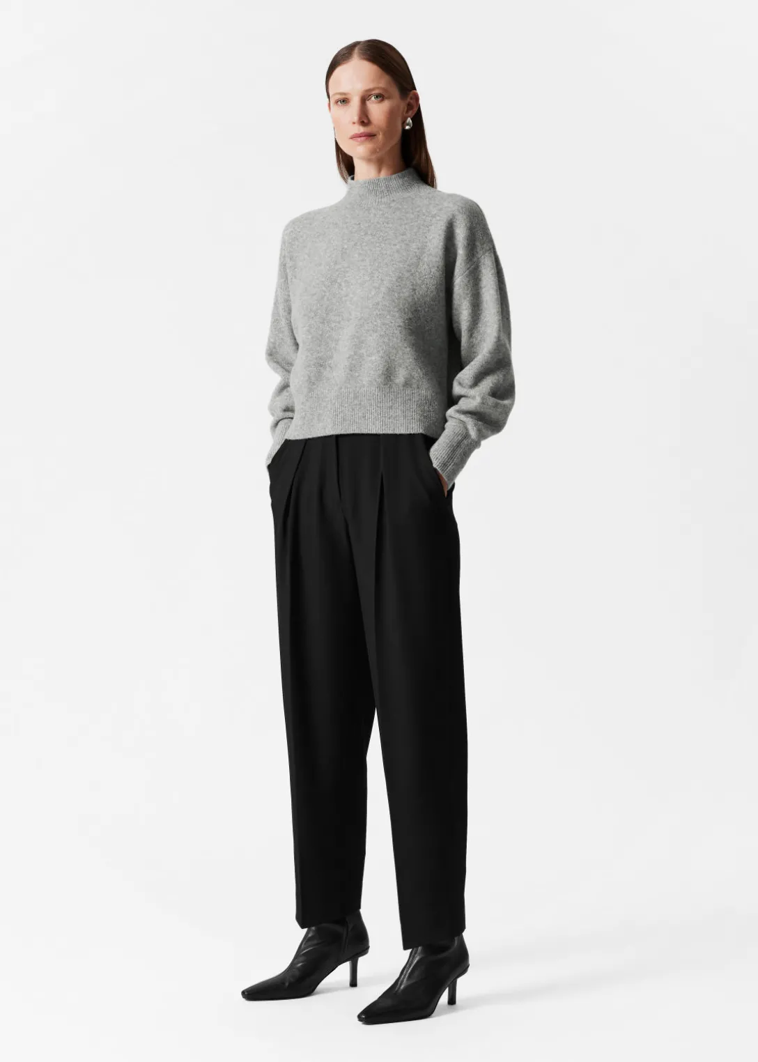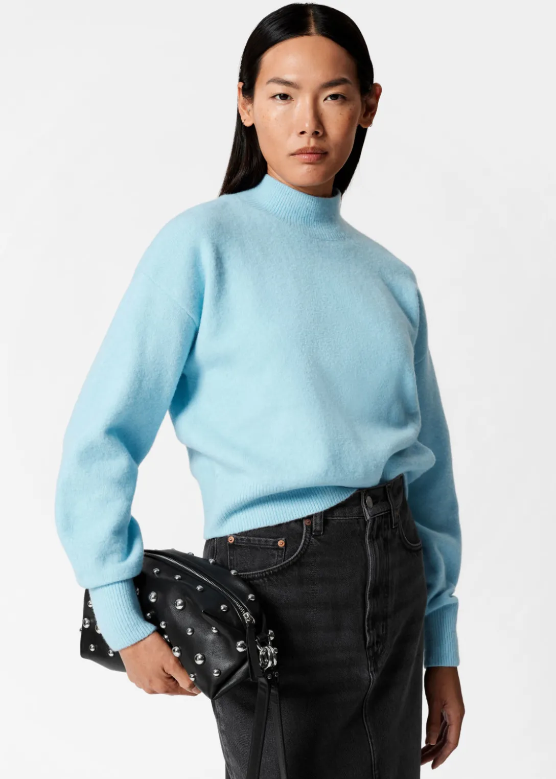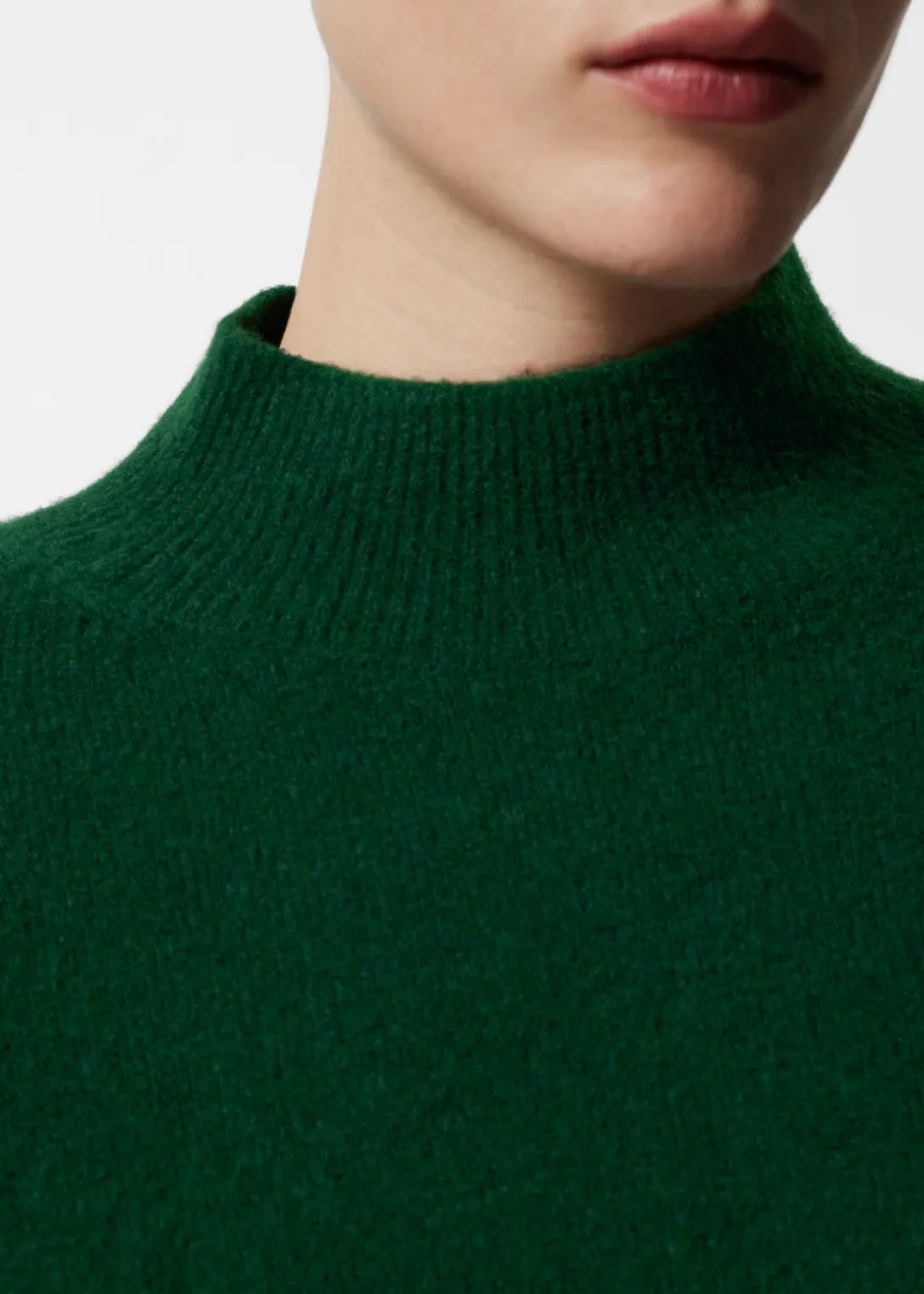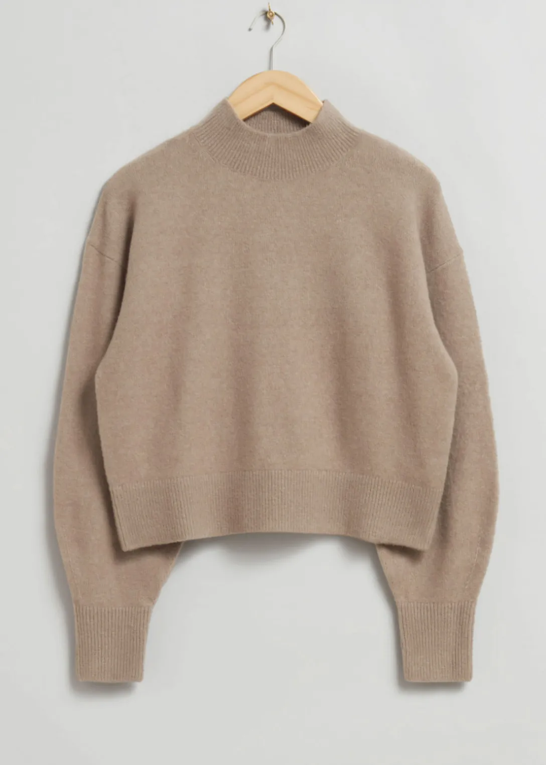 Pull en maille à col montant avec épaules tombantes et coupe droite.
