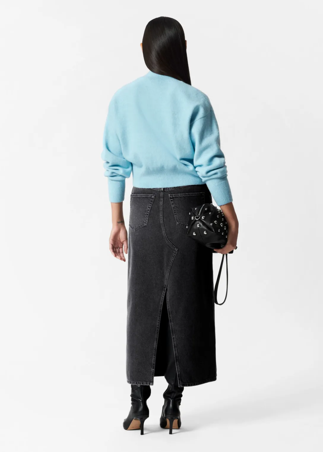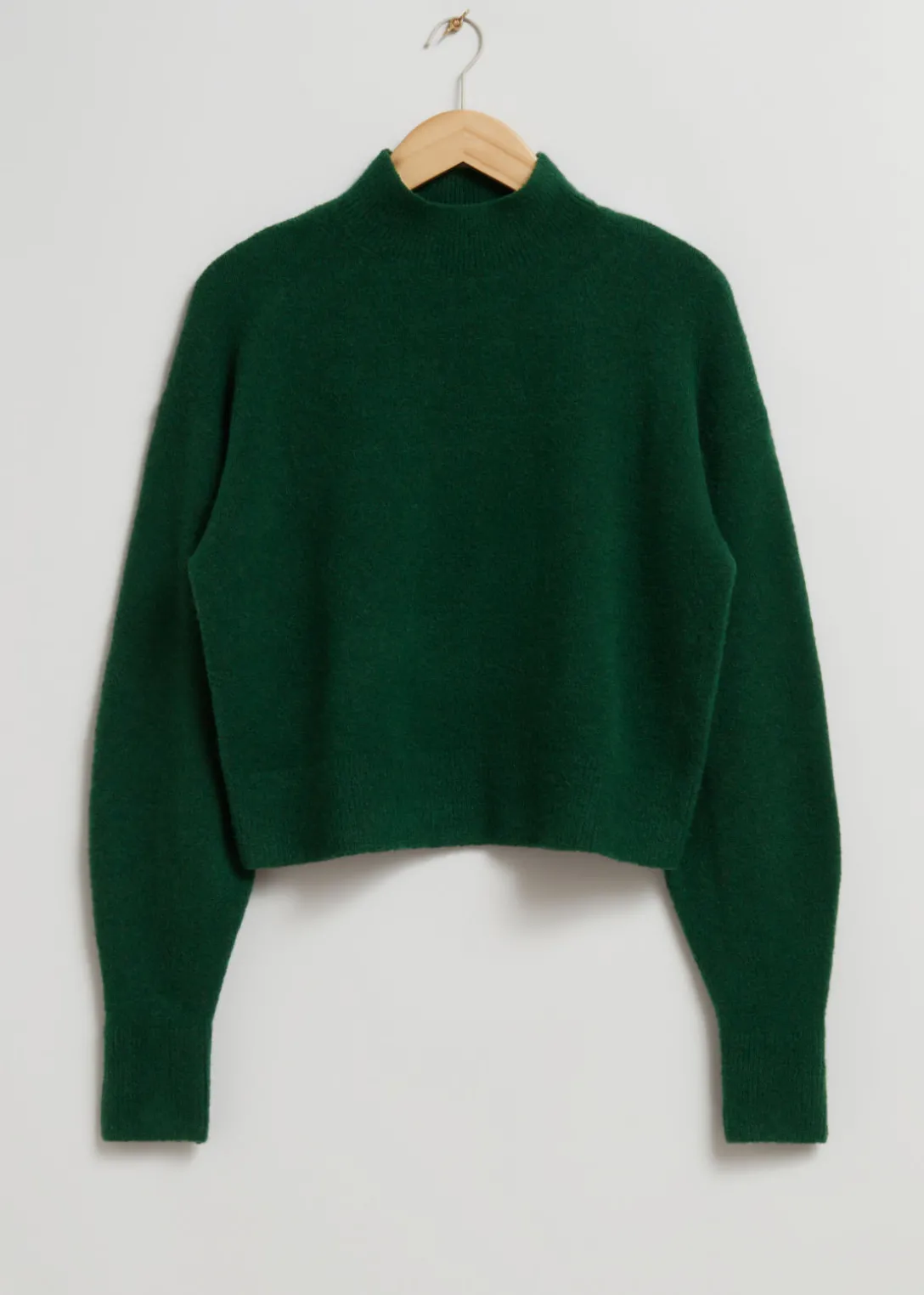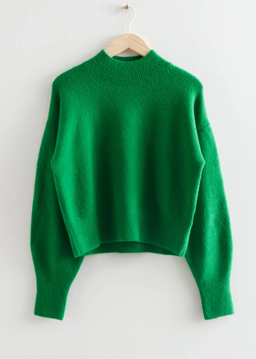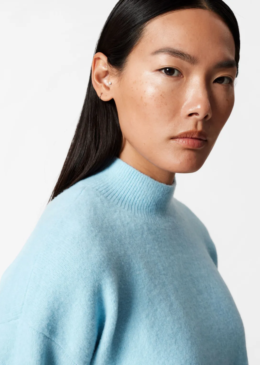 Pull en maille à col montant avec épaules tombantes et coupe droite.