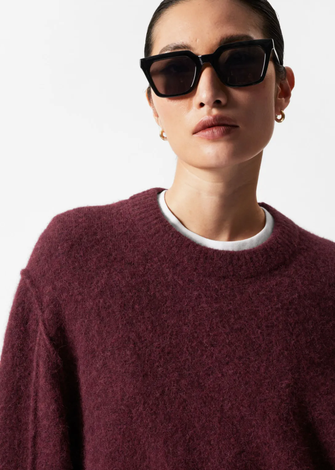 Pull à manches longues, confectionné à partir d’un mélange d’alpaga et de laine.