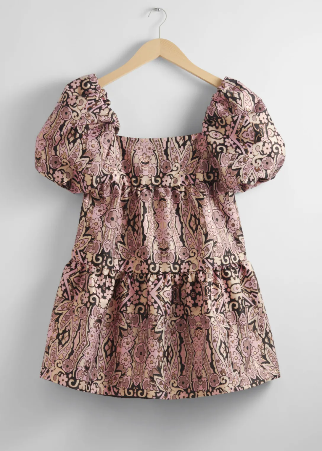 Robe courte à manches ballon avec un dos ouvert et des lacets.