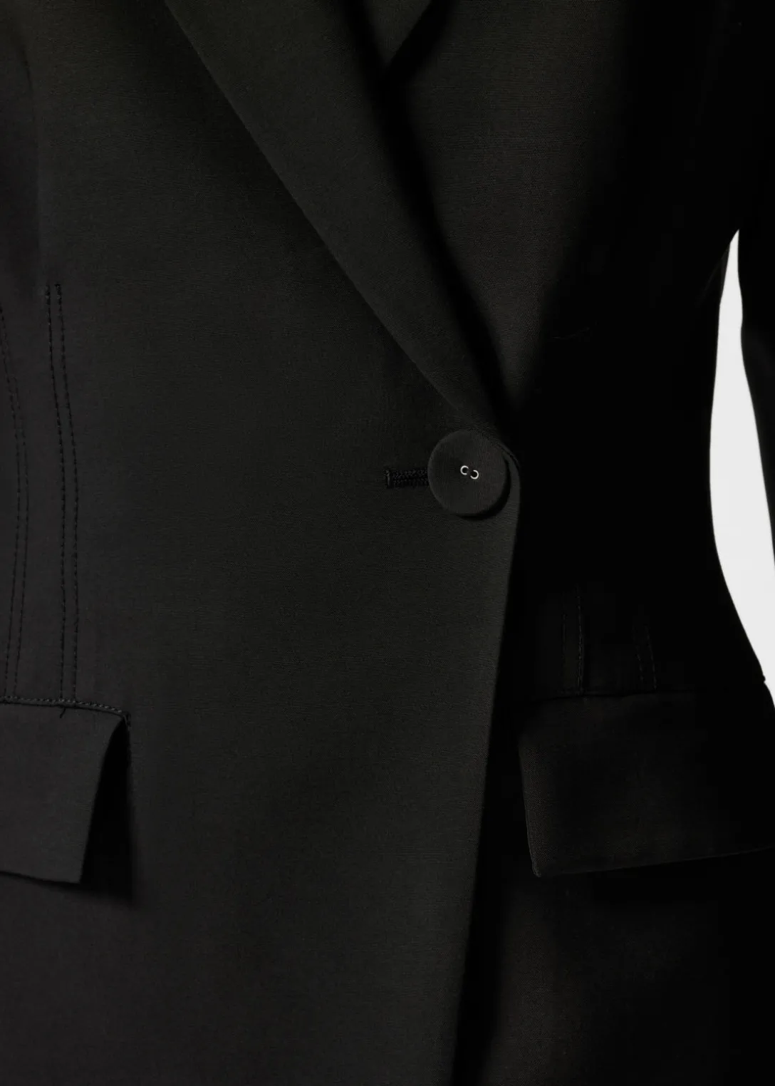 Mini robe blazer à boutonnage unique, épaules rembourrées et taille accentuée pour une silhouette structurée, de type sablier.