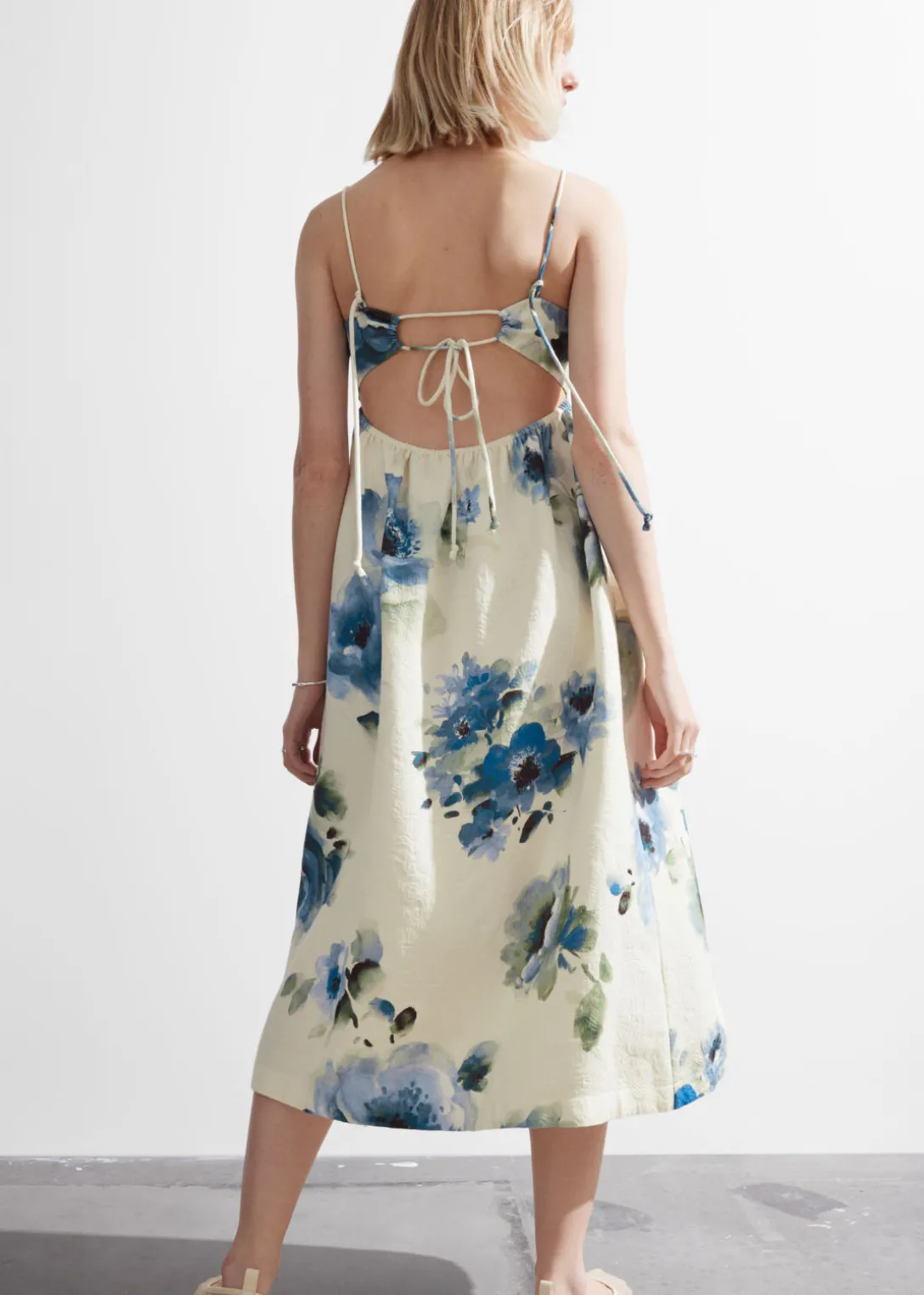 Robe midi dotée de bretelles fines et d’un dos ouvert avec des liens à nouer.