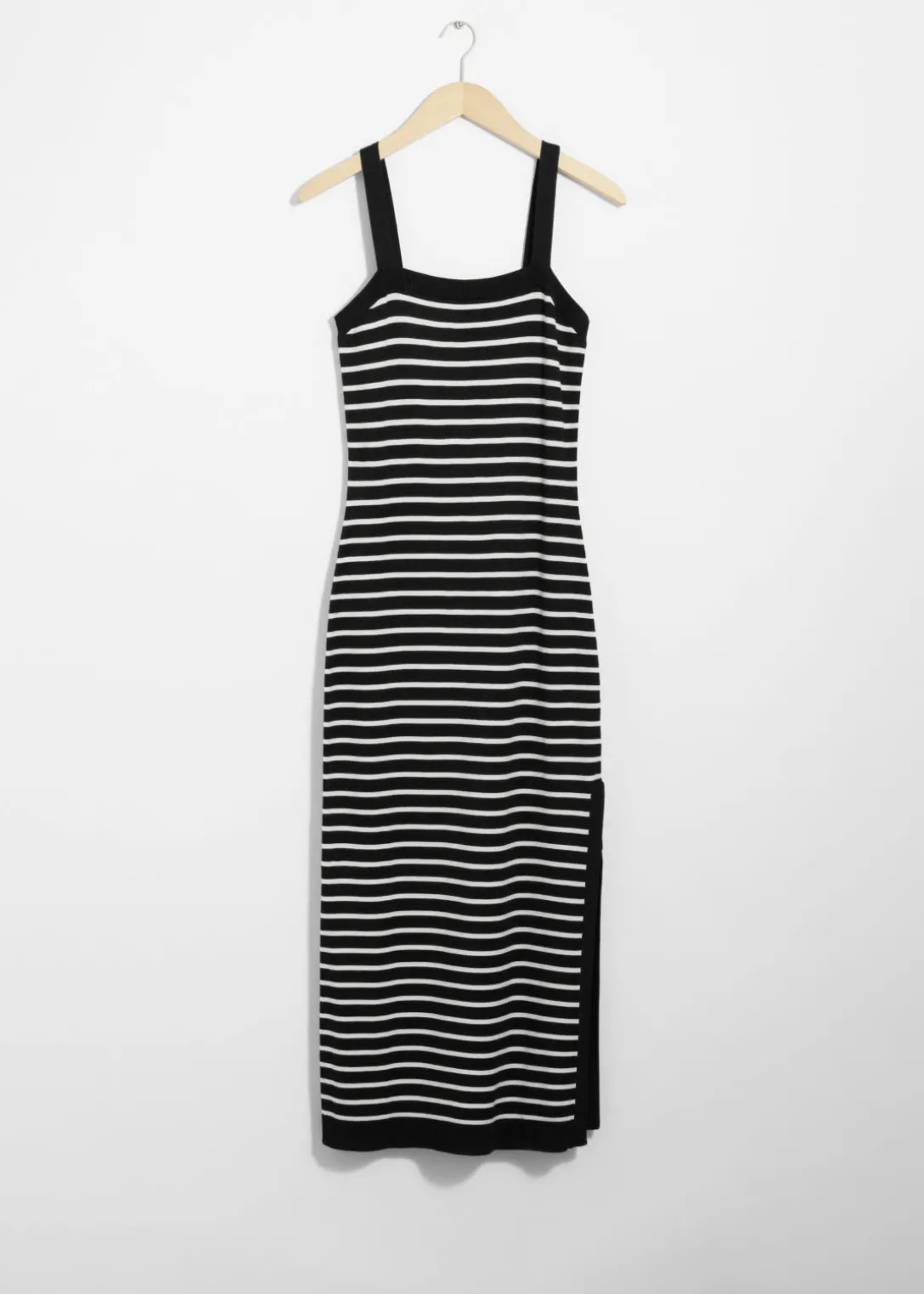 Robe midi en maille jacquard, avec des bretelles larges et une encolure carrée.