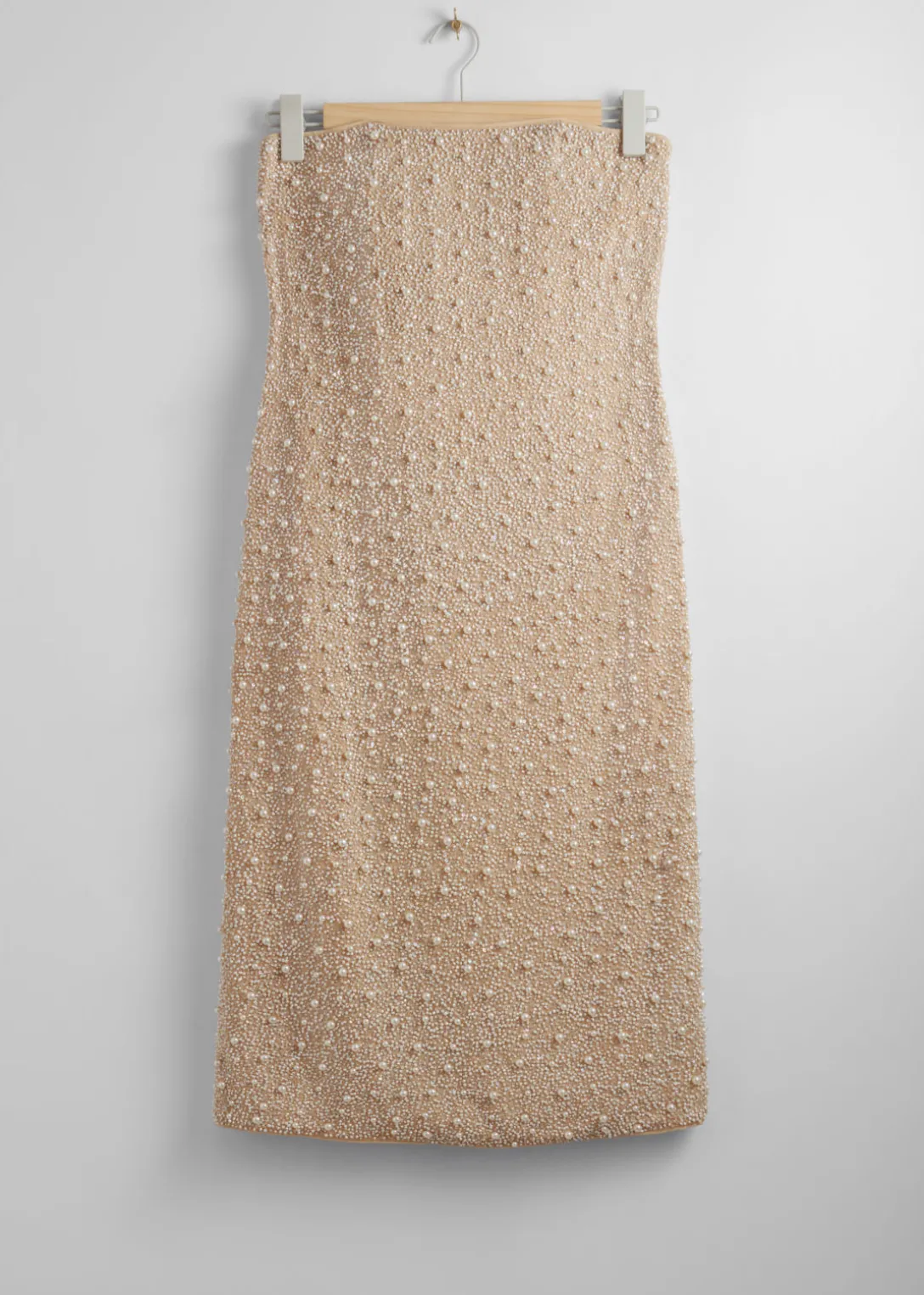 Robe tube midi, ornée de perles synthétiques et dotée d’un bustier de type corset.