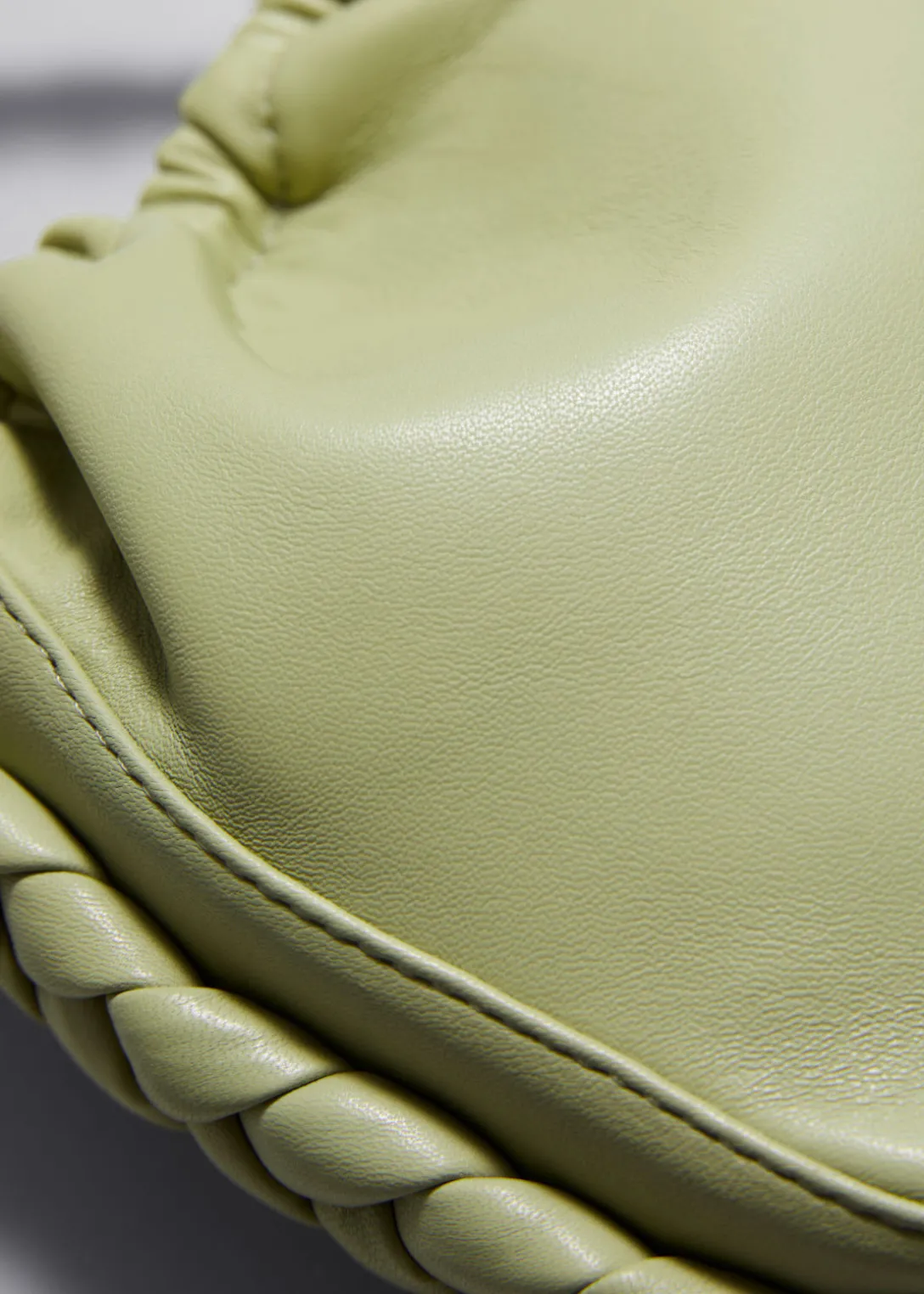 Confectionné en cuir souple, ce sac a une forme de seau doux. Ce petit sac est agrémenté d’une anse tressée et de ferrures dorées. L’intérieur doublé de coton contient une poche intérieure et une fermeture magnétique dissimulée.