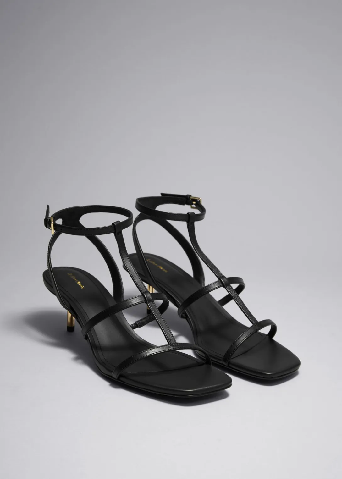 Confectionnées en cuir souple, ces sandales à talons présentent une silhouette avec des brides en T rehaussant le pied. Elles possèdent des bouts carrés et des boucles délicates ton sur ton.