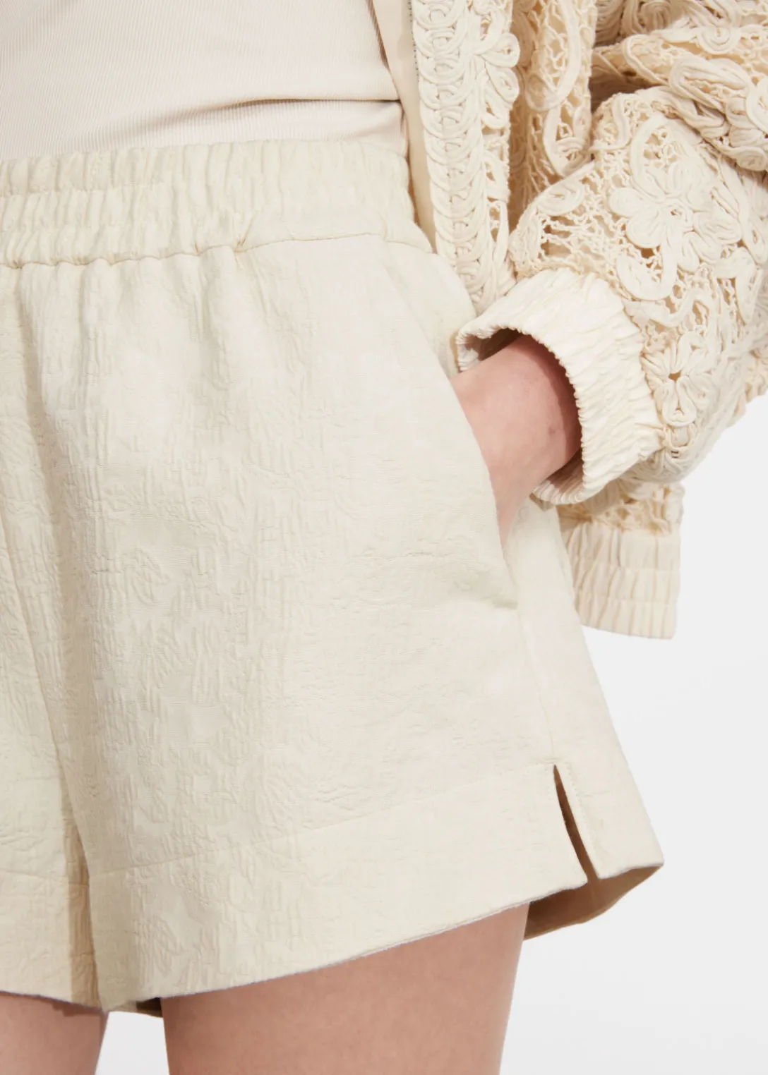 Short taille haute avec une finition jacquard texturée et une taille élastique.