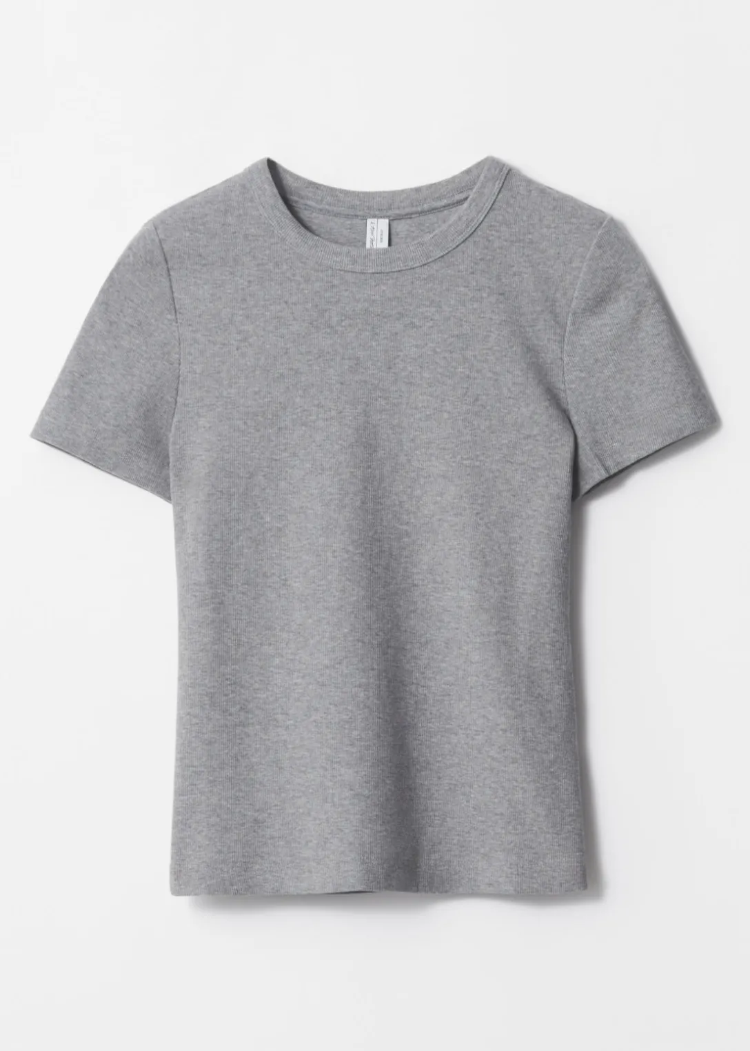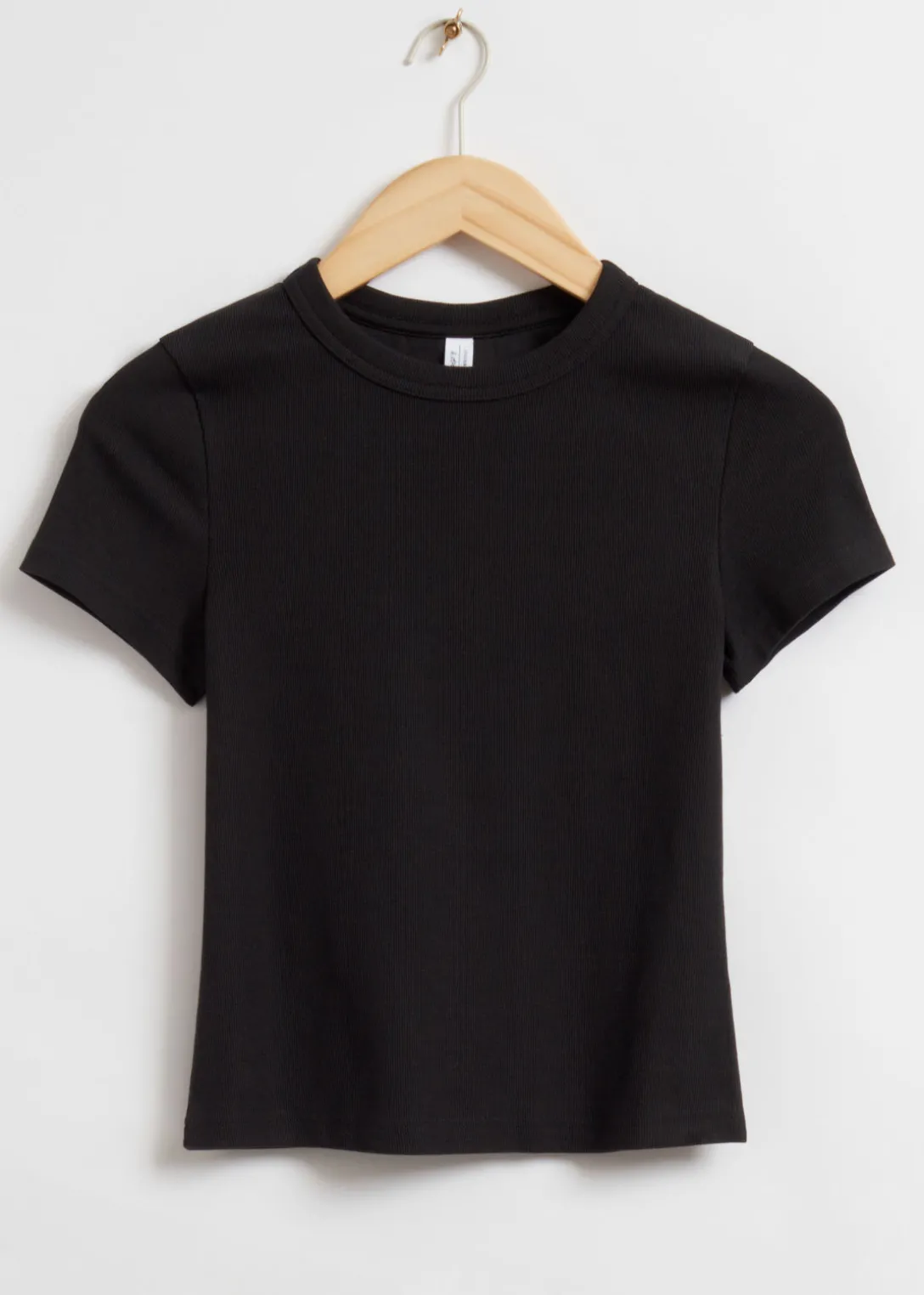 T-shirt court avec des manches courtes et une encolure arrondie.