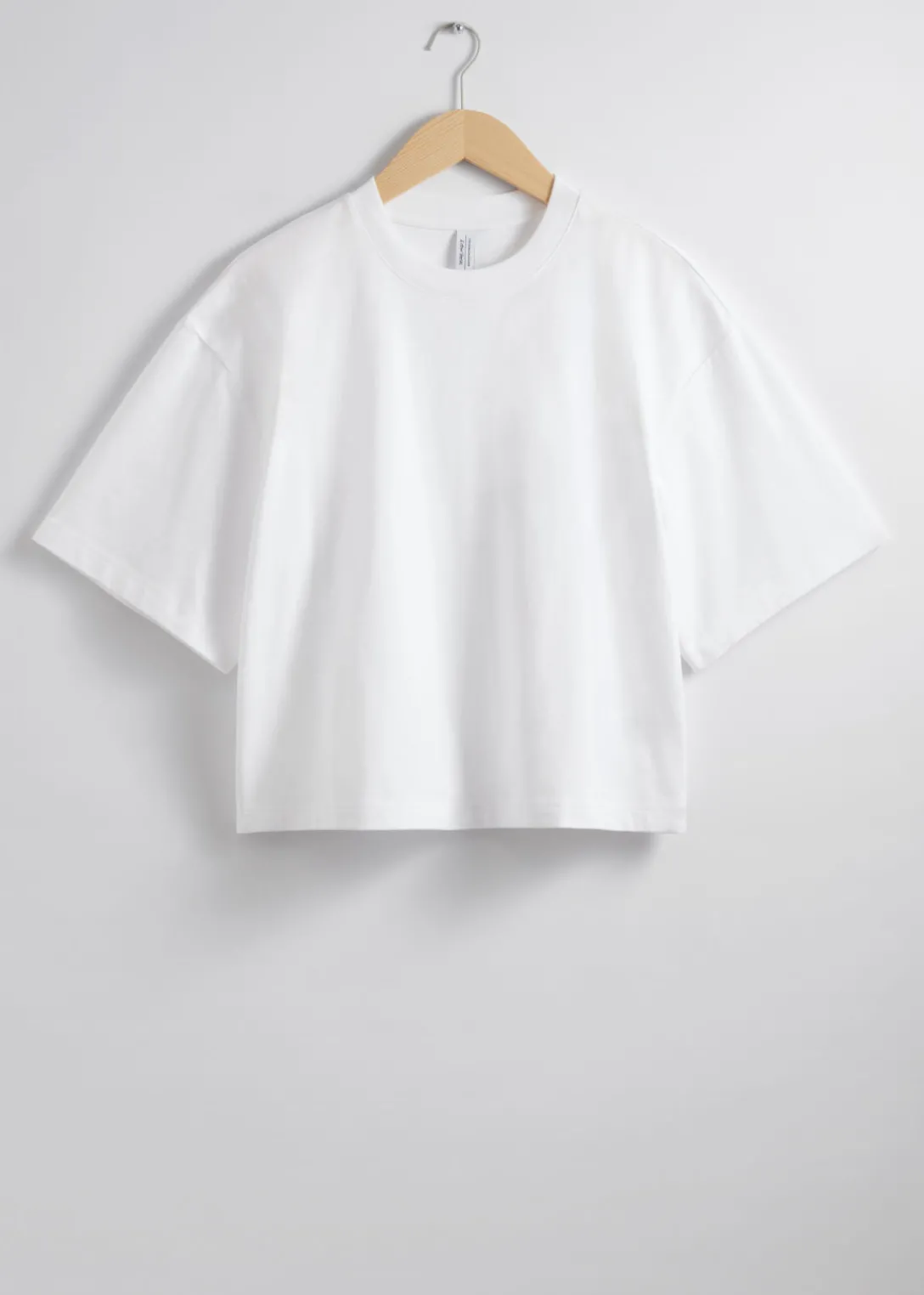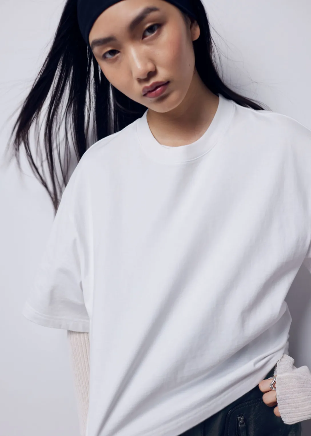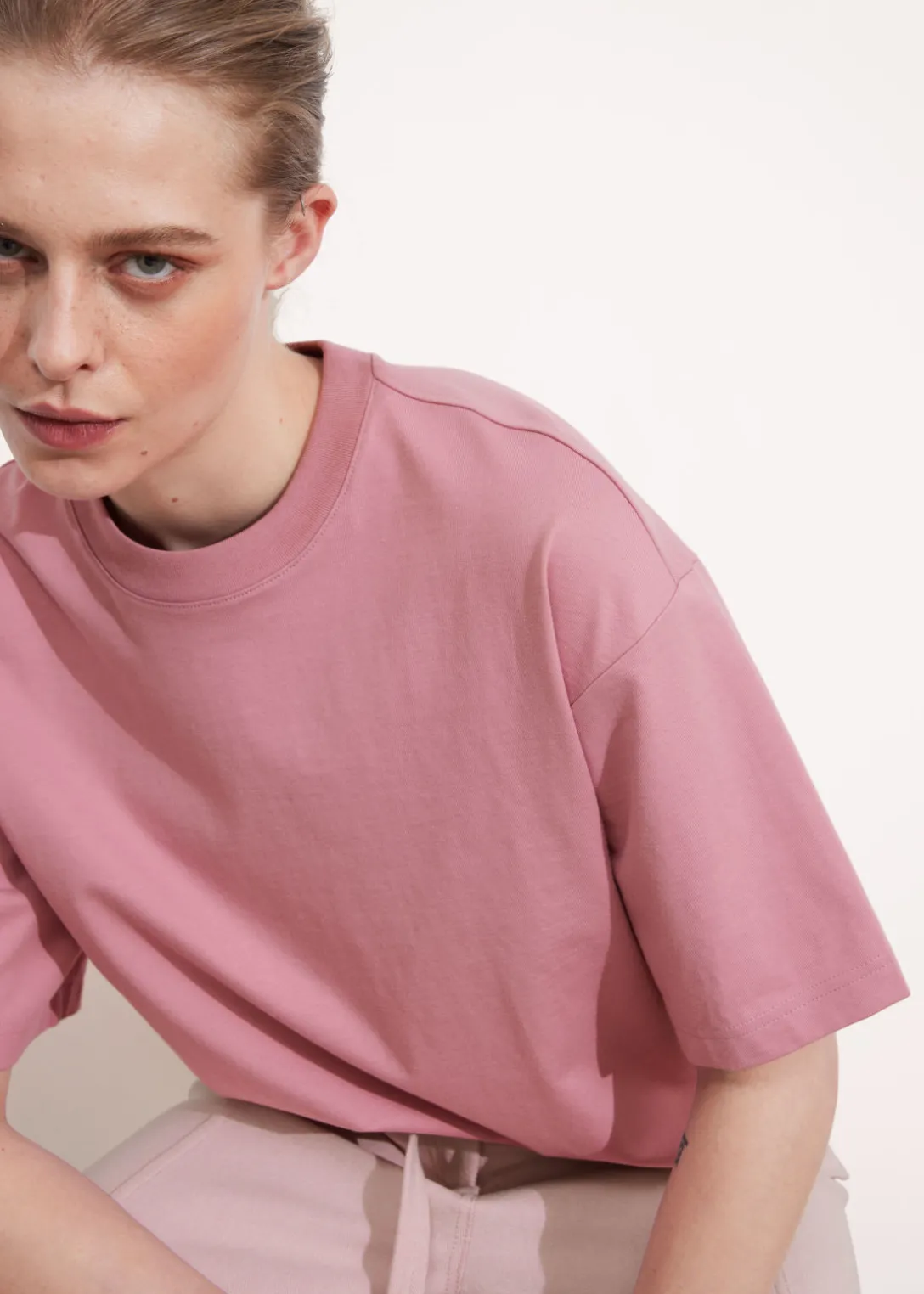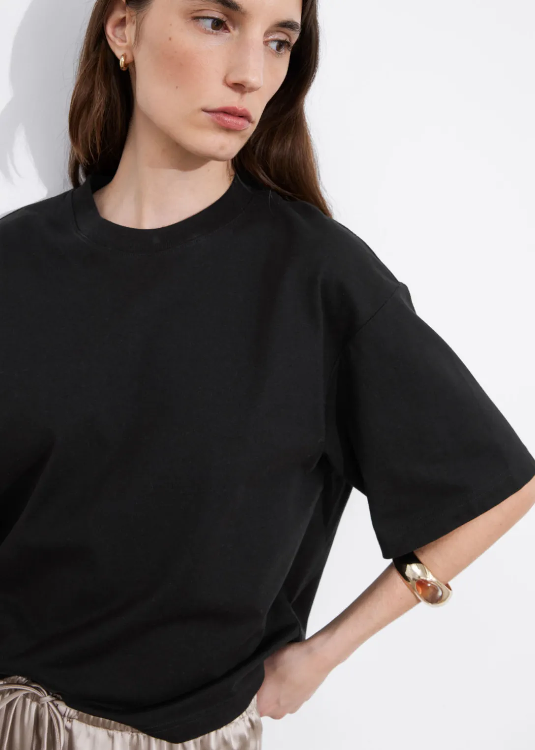 T-shirt ras du cou, avec une silhouette décontractée et structurée.