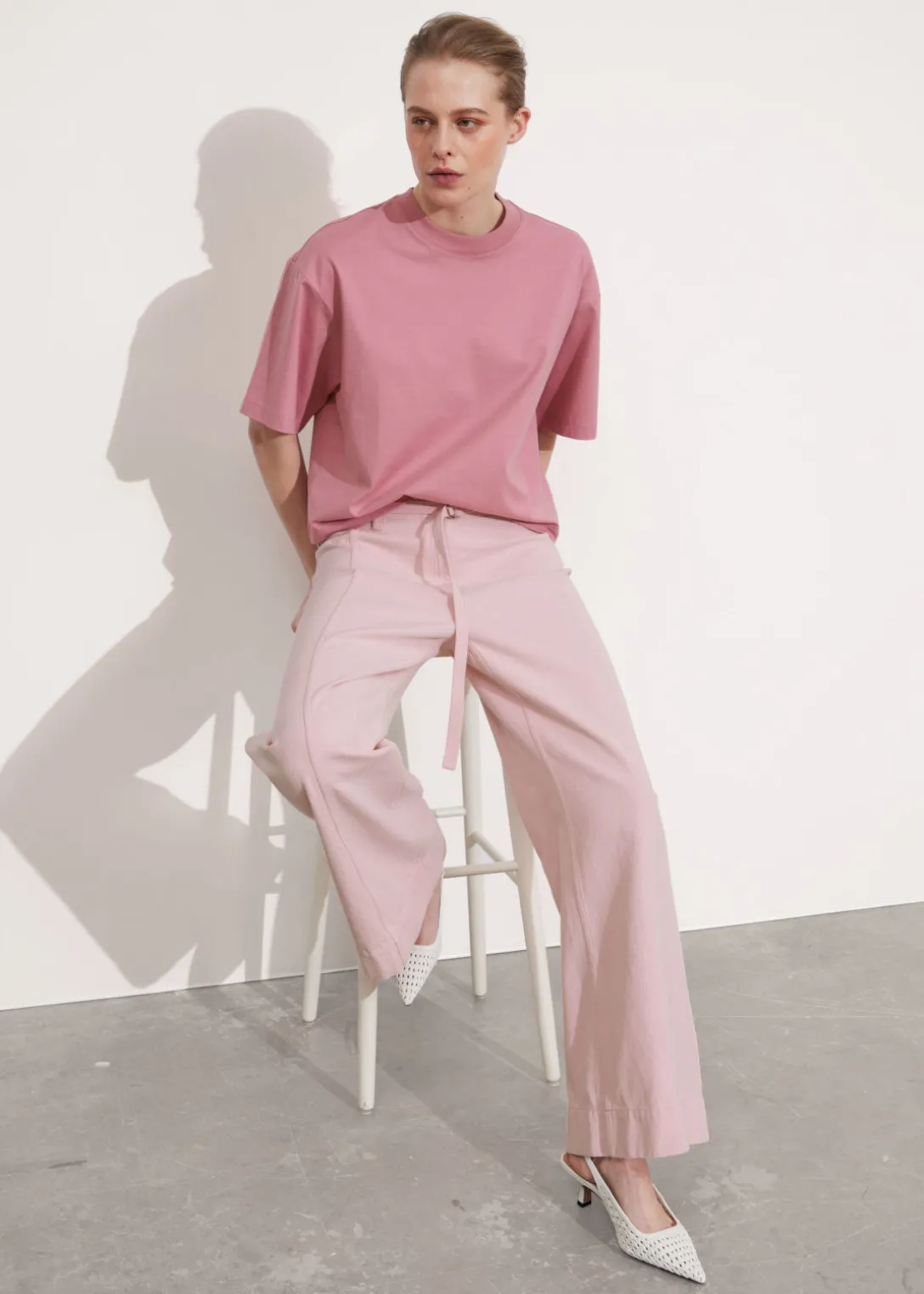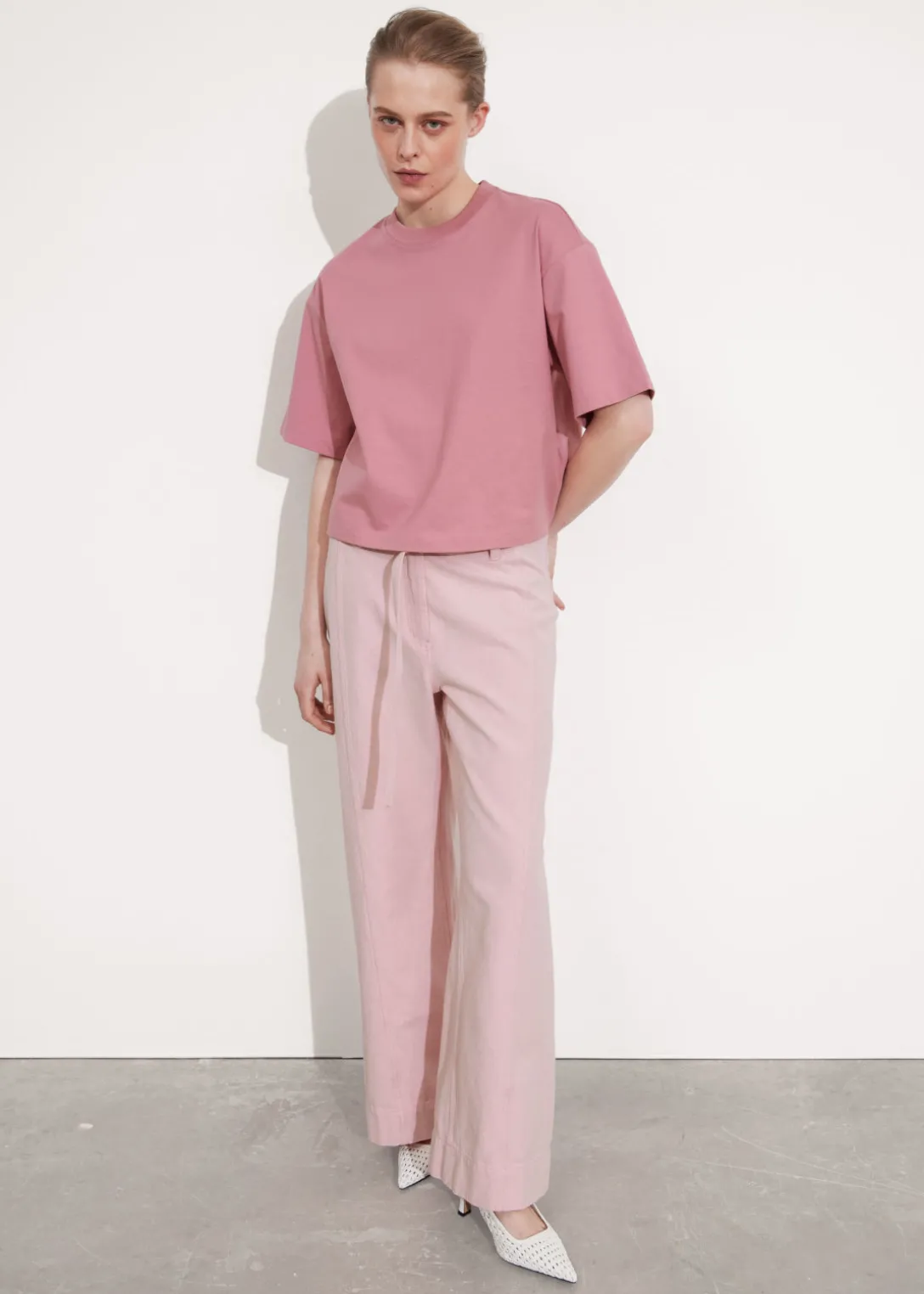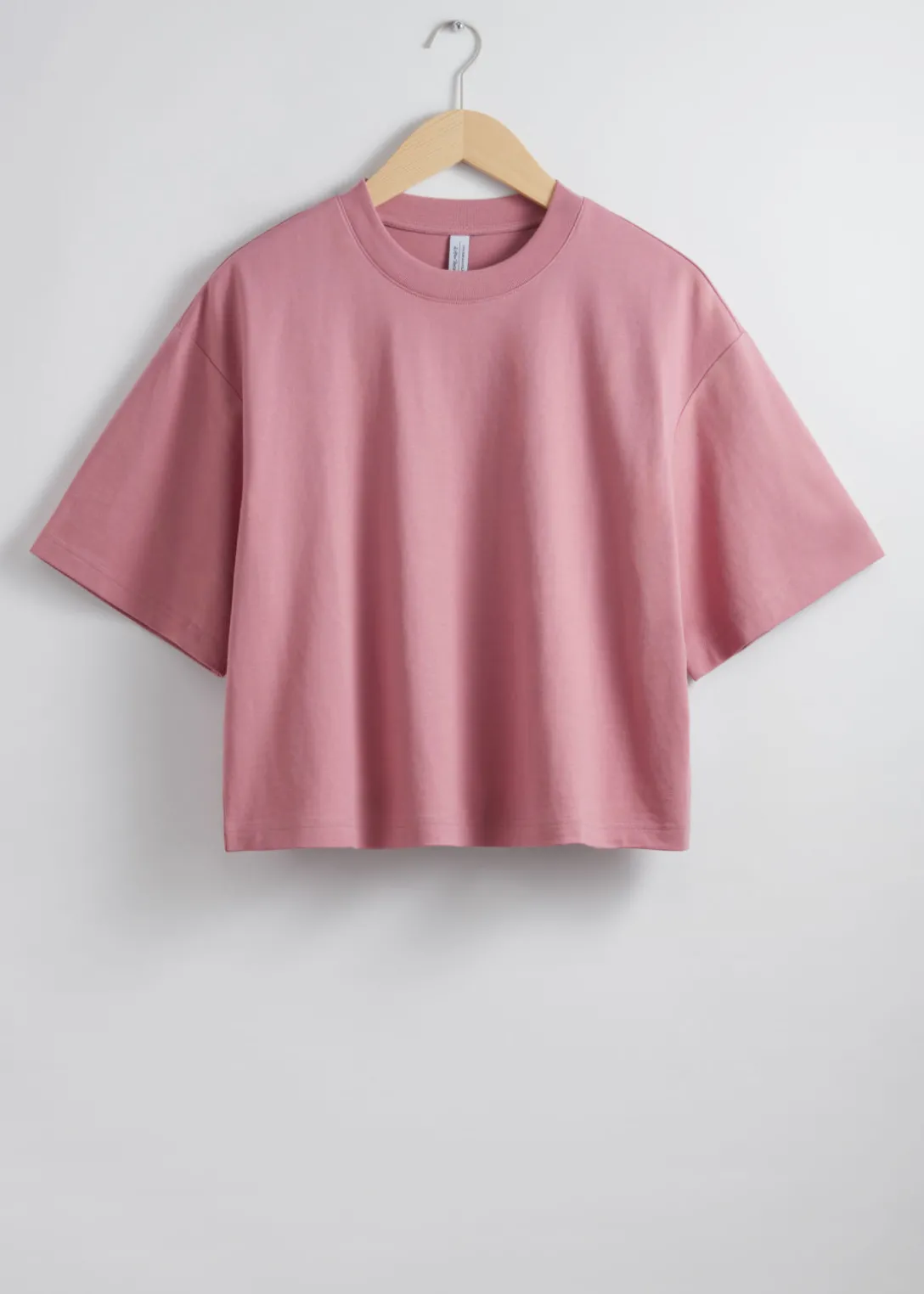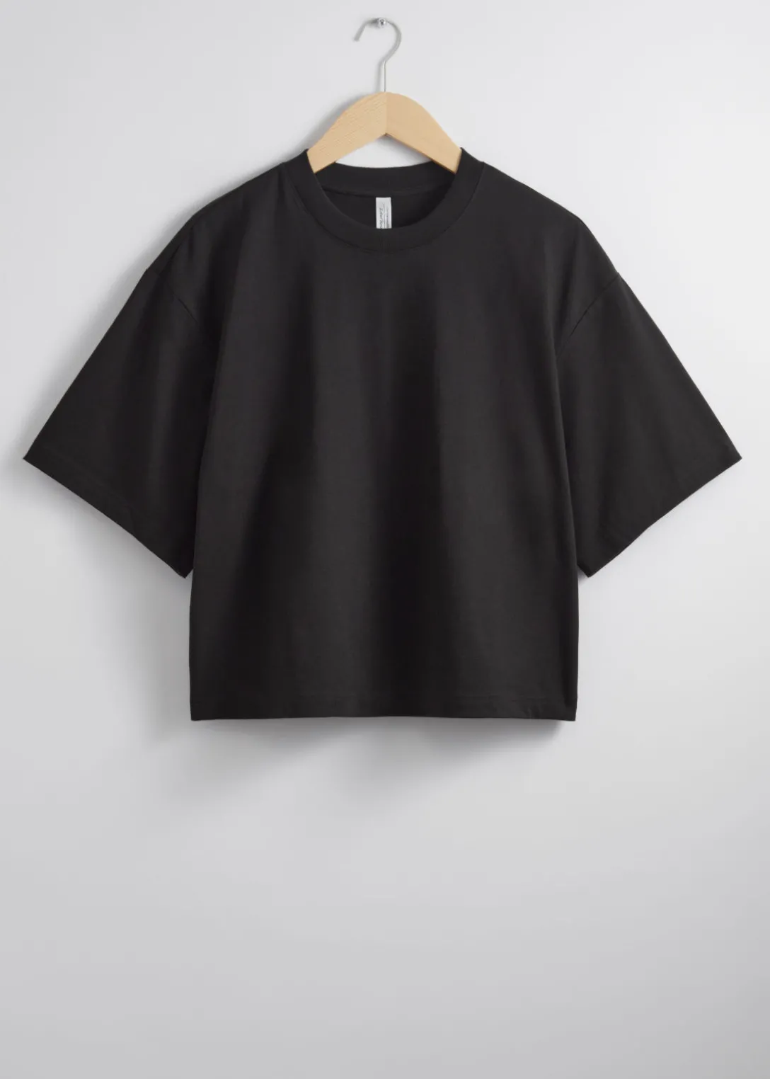 T-shirt ras du cou, avec une silhouette décontractée et structurée.