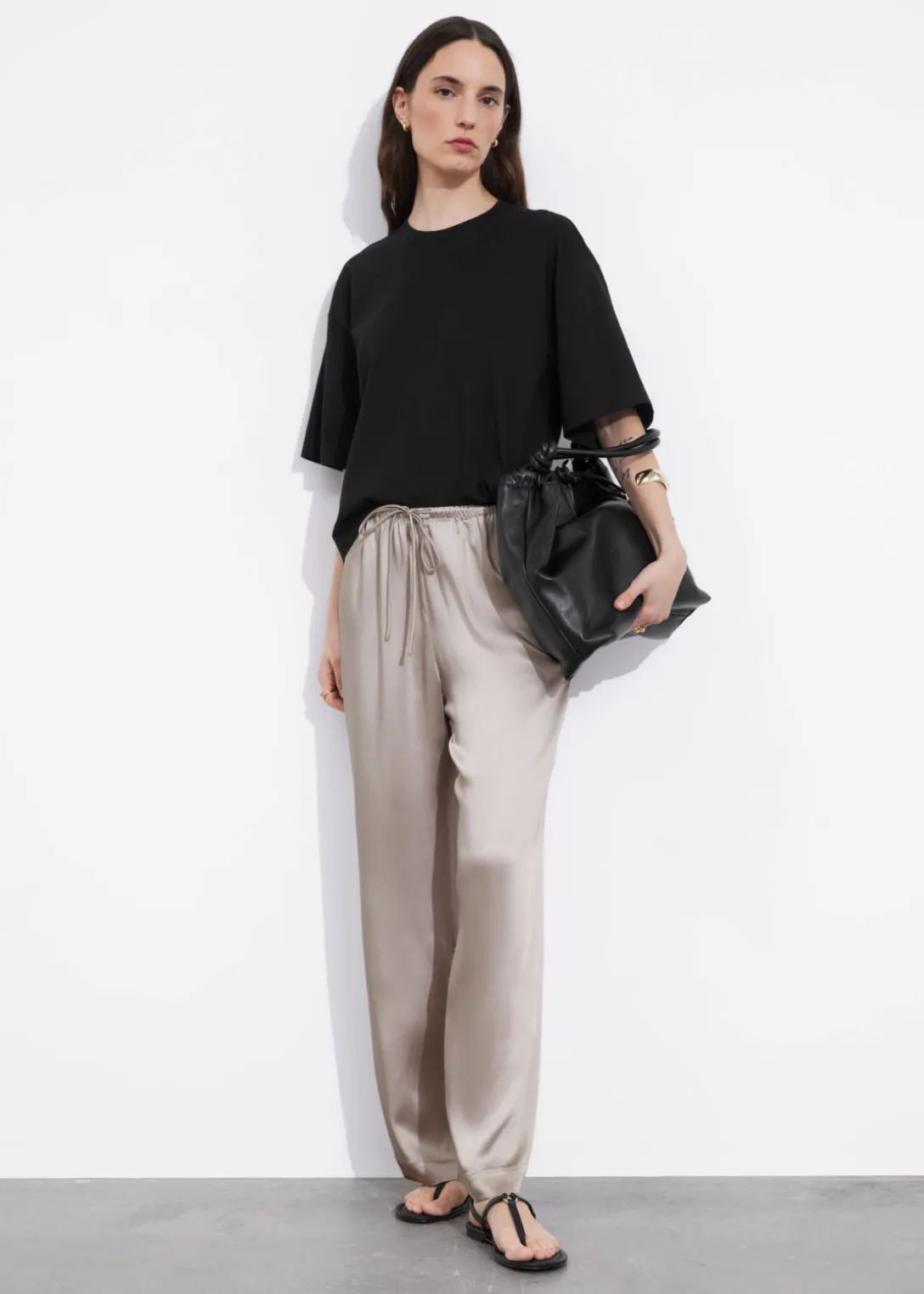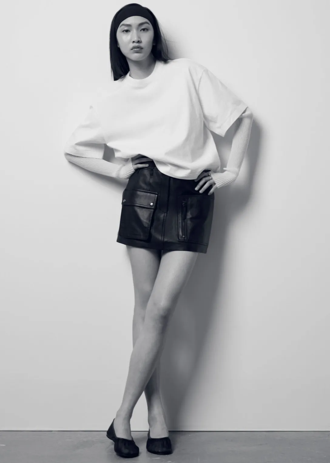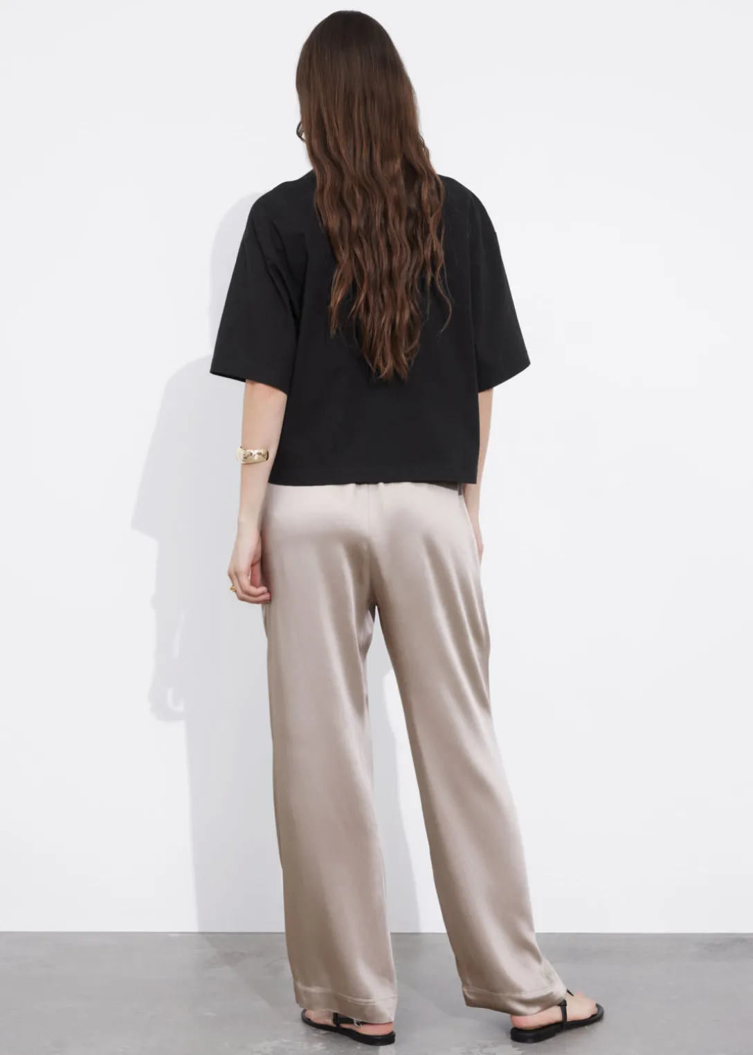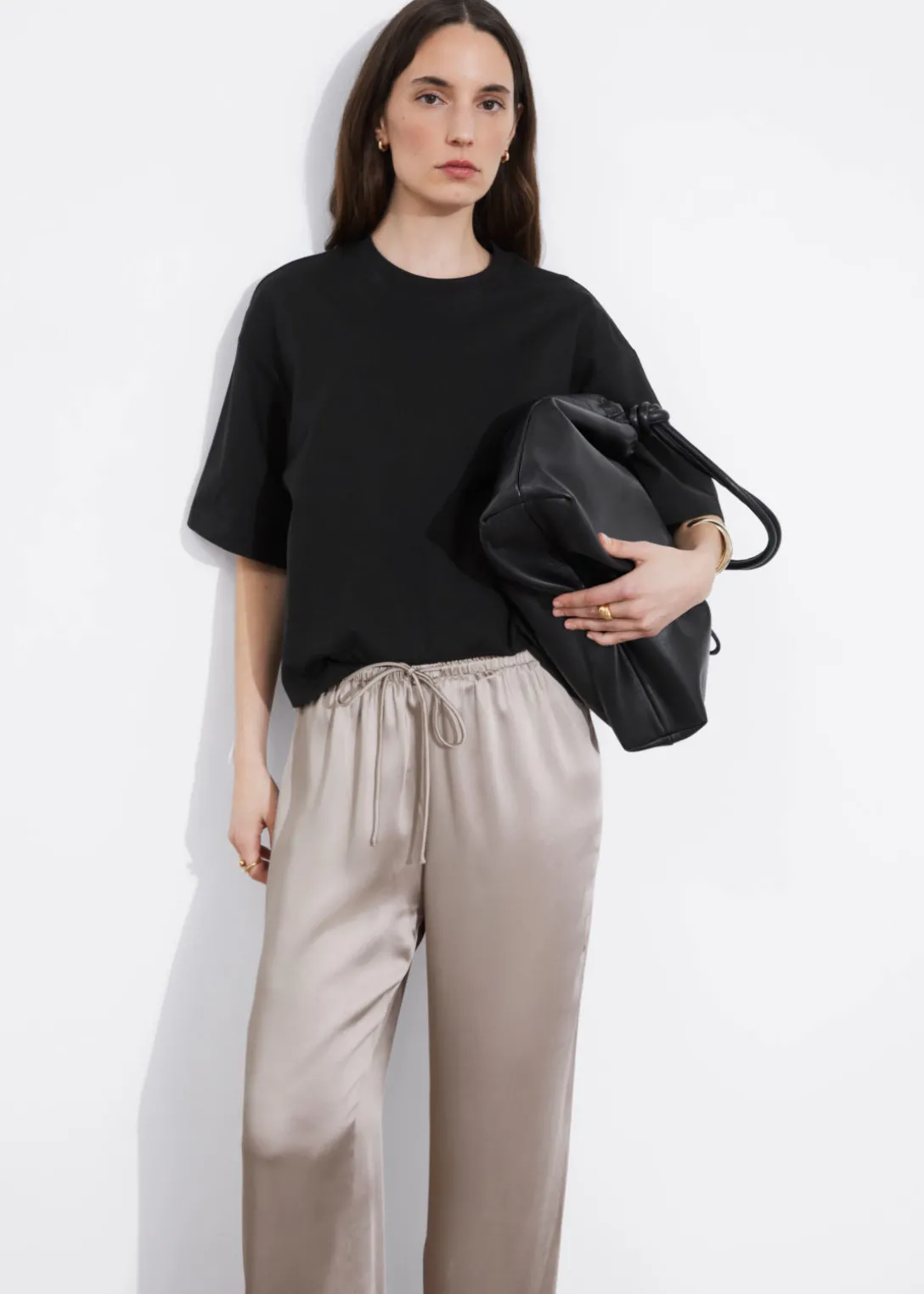 T-shirt ras du cou, avec une silhouette décontractée et structurée.