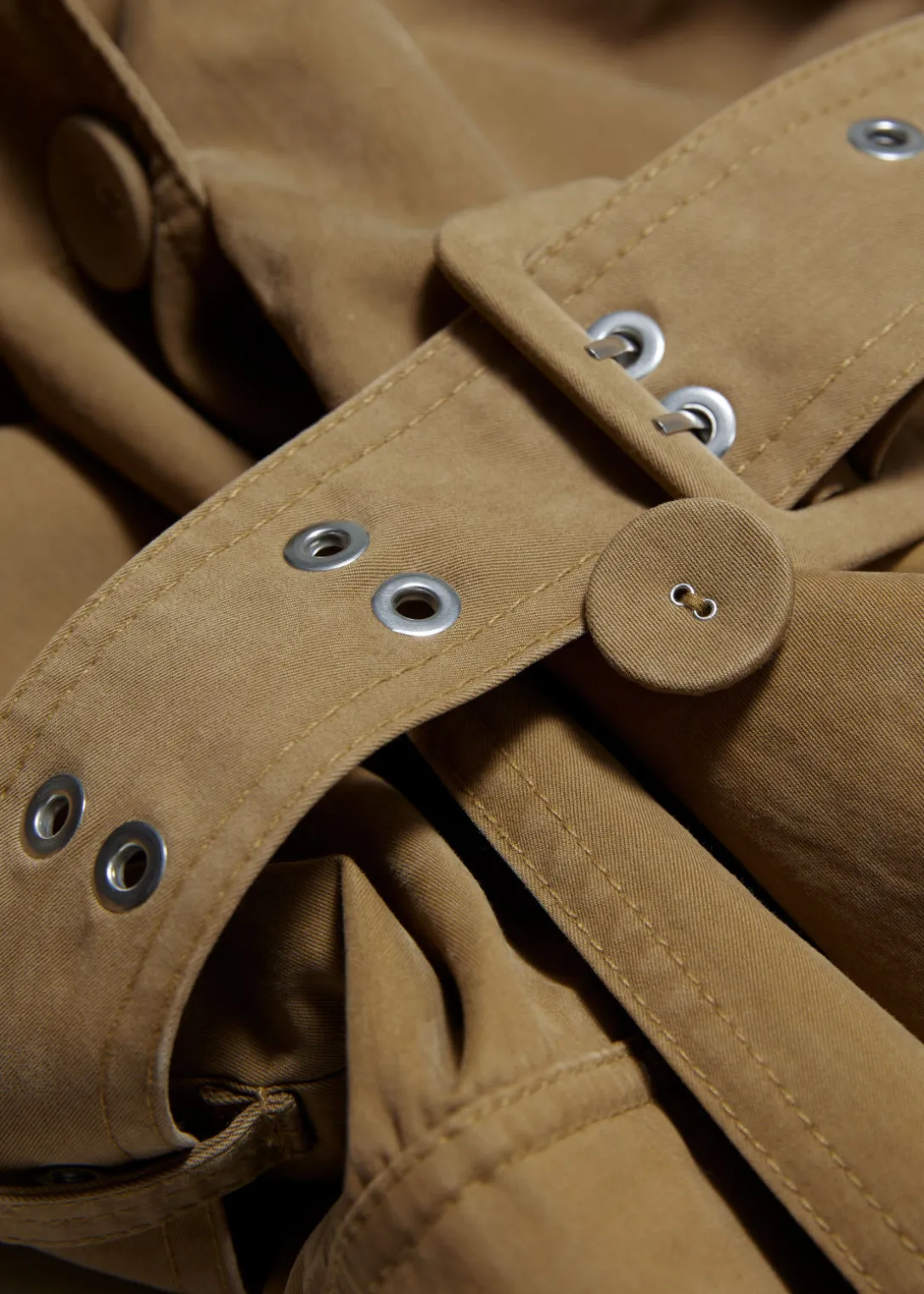 Trench-coat croisé avec deux grandes poches à rabat et une ceinture à boucle ton sur ton.