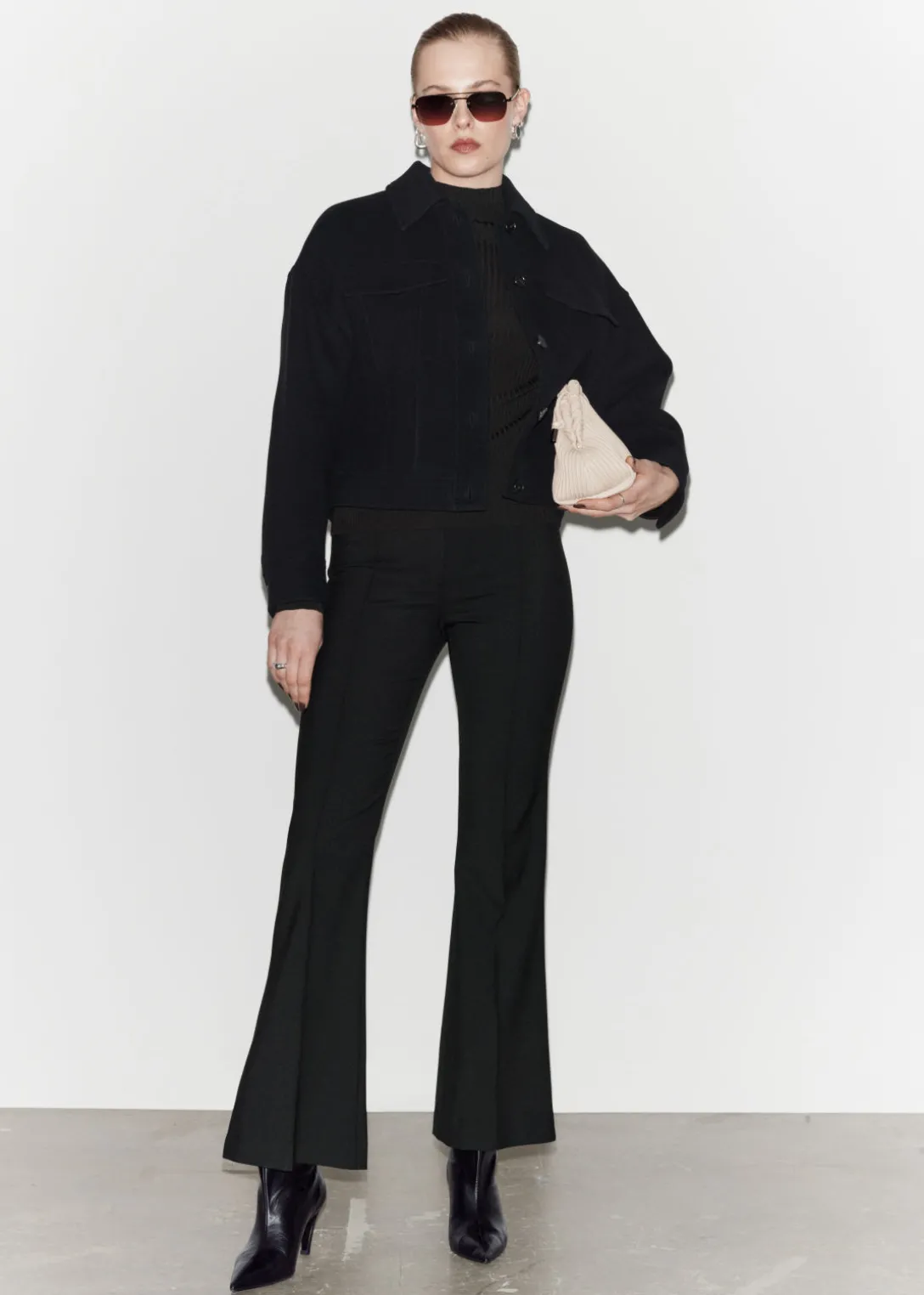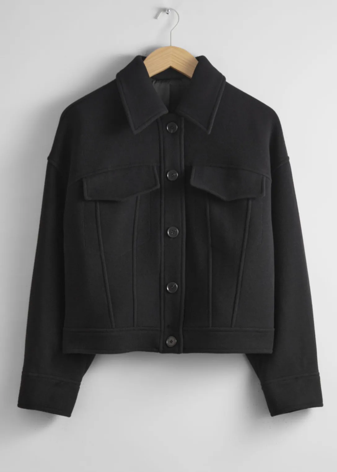 Veste à col en laine mélangée, avec deux poches plaquées sur la poitrine et des surpiqûres.
