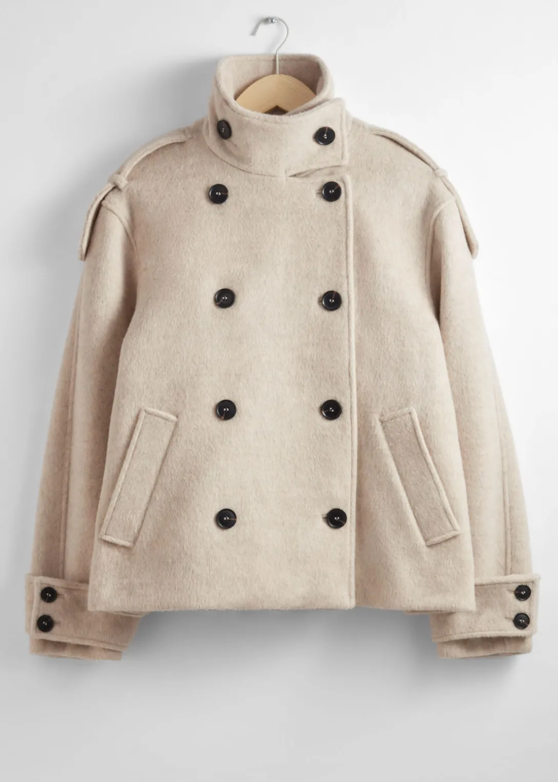 Veste croisée en laine avec des épaules tombantes pour une silhouette décontractée.